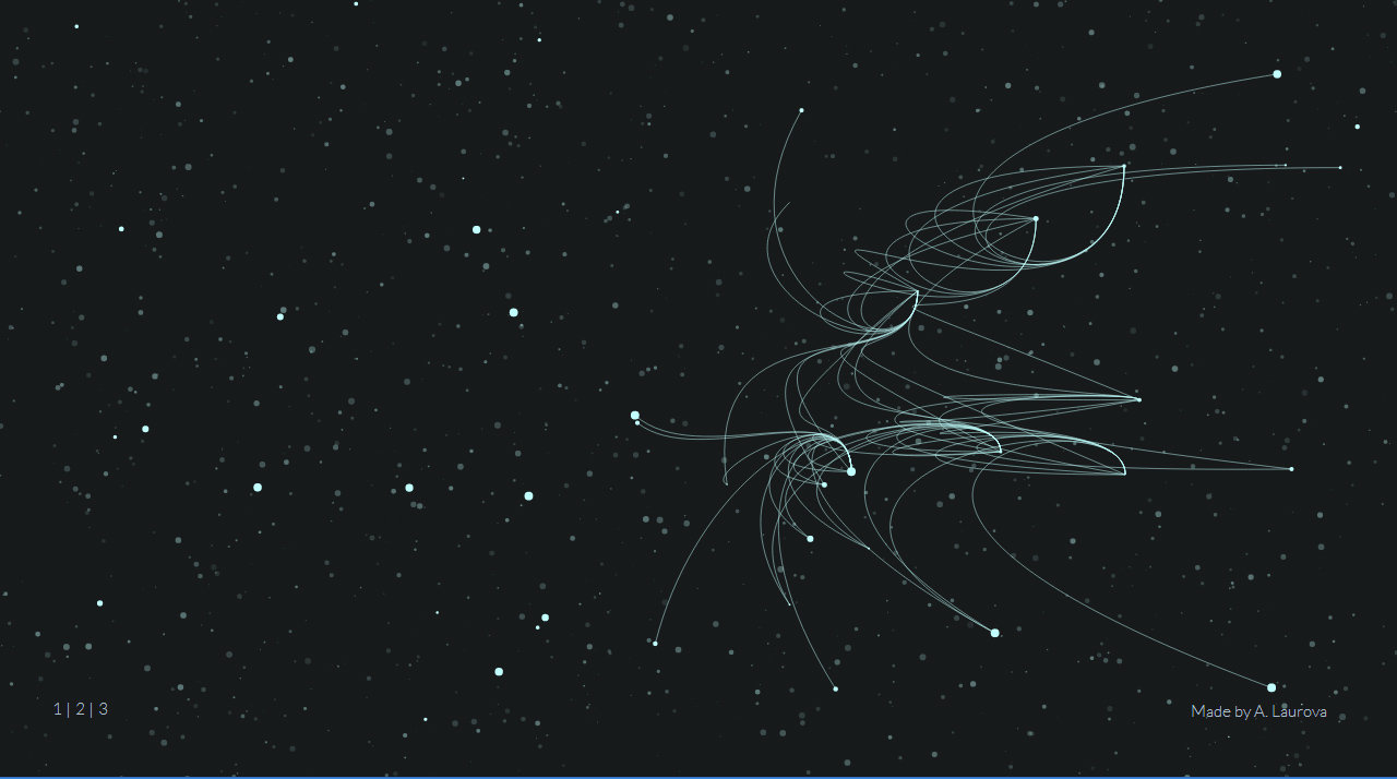 Dynamic JavaScript web site is illustrating the particle chaos in a tiny fraction of a second after the Big Bang. The bright lines represent short-lived particles that are continually created and annihilated as they colide with each other.