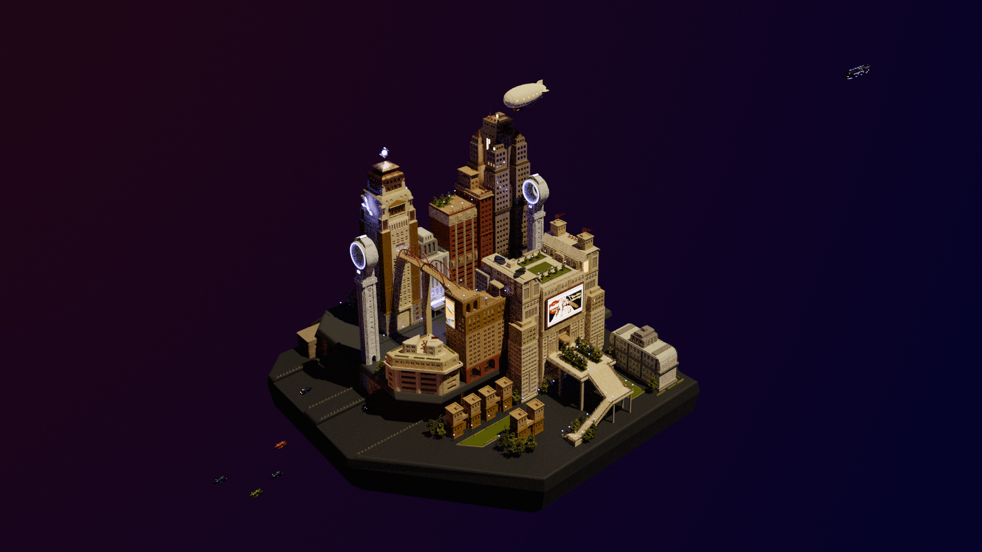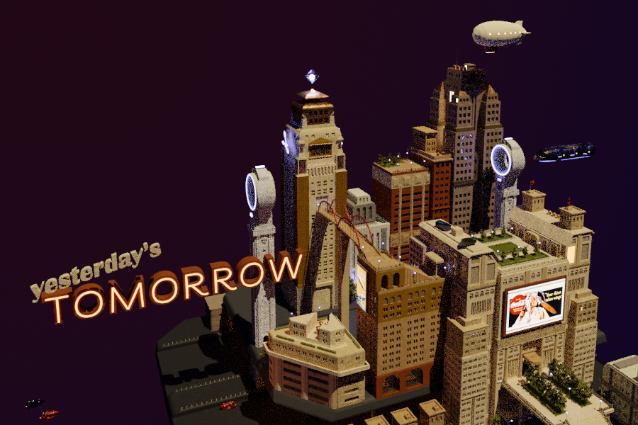 Jako klauzurní práci jsem se rozhodla zpracovat téma retrofuturismus v podobě animovaného 3D dioramatu. Projekt Včerejší zítřky vizualizuje, jak si lidé ve 30. letech 20. století představovali budoucnost – hromadná doprava na bázi elektromagnetických polí, víceúrovňové ulice a vzdušný dopravní ruch jsou zasazeny do meziválečné městské estetiky mrakodrapů a cihel. Všechny objekty jsou ručně modelované, jediný add-on jsem použila pro základní vrstvu materiálů.