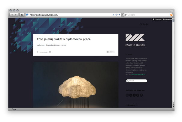 a webdesigner. Ke vzniku této prezentace bylo nejprve zapotřebí navrhnout značku a identický vizuální styl, který koresponduje se samotnou tvorbou autora. Následně tento styl uplatnit do odpovídajících aplikací