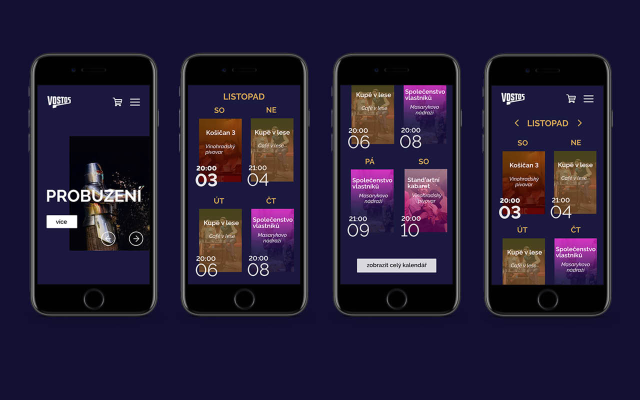 Návrh webu pro divadelní skupinu Vosto5. Zaměřila jsem se kalendář, který je inspirován "standardním tištěným".