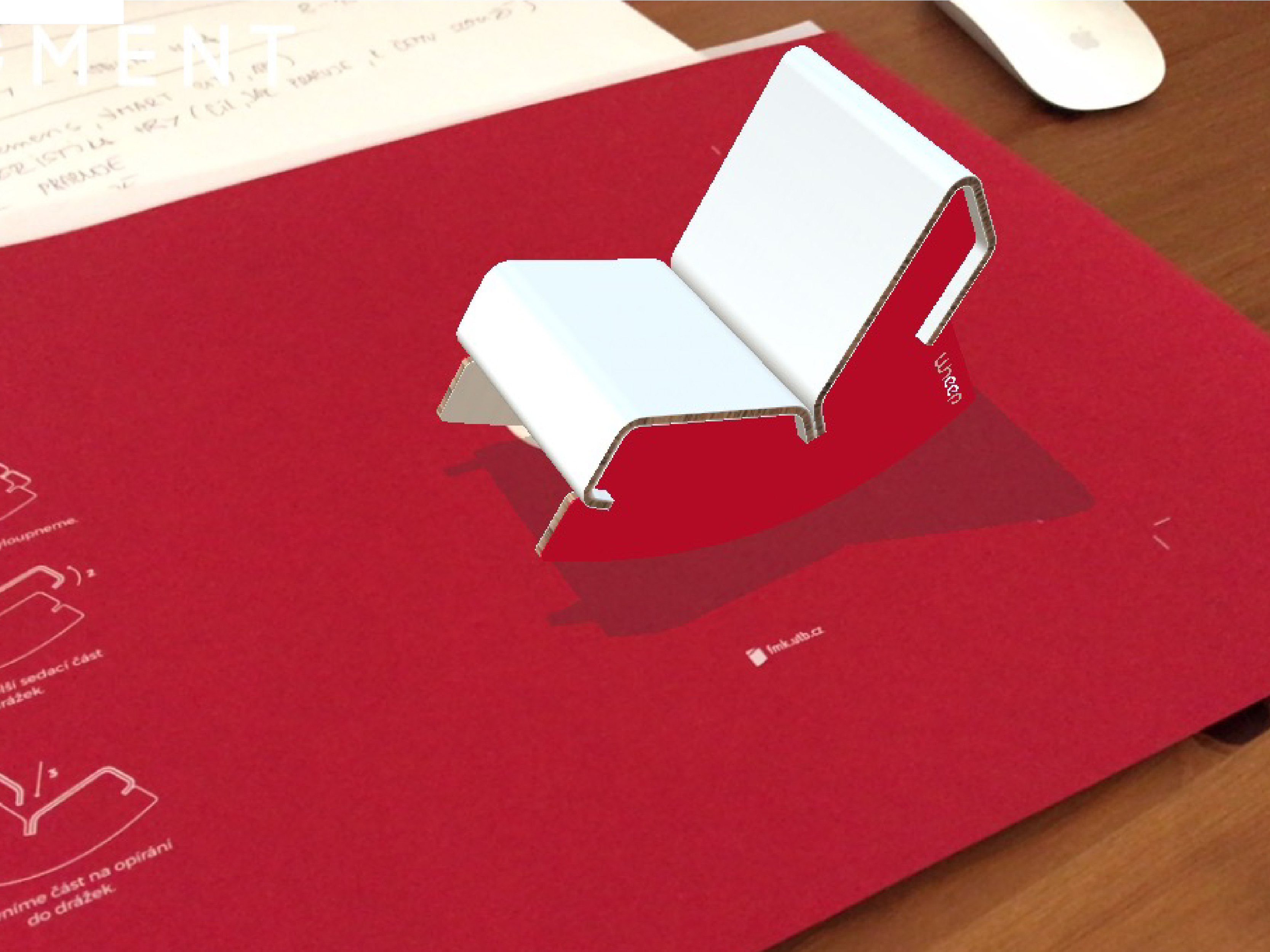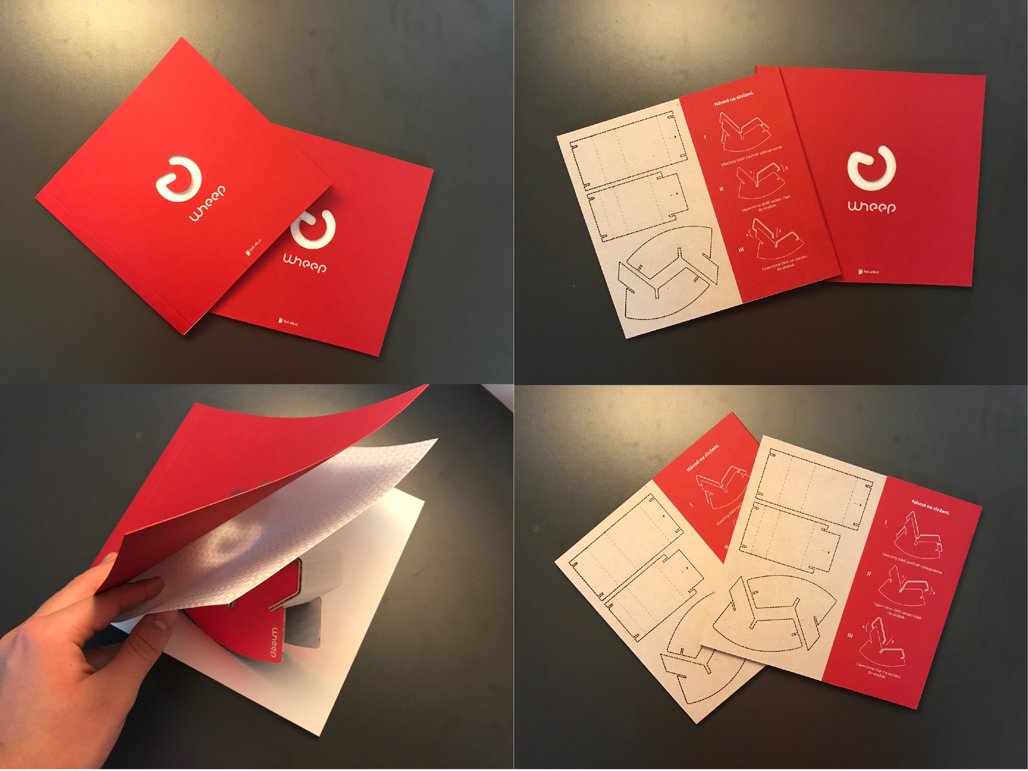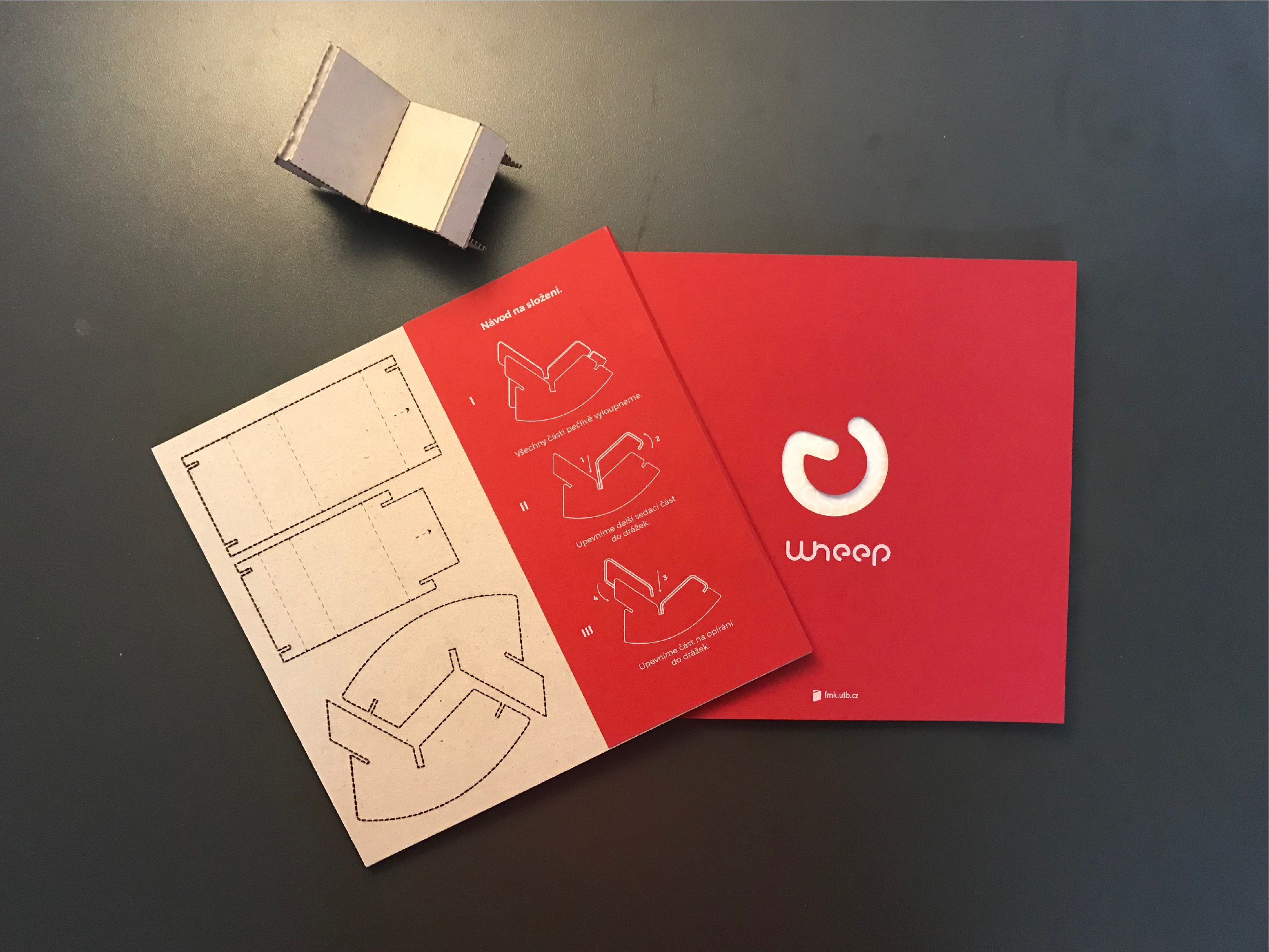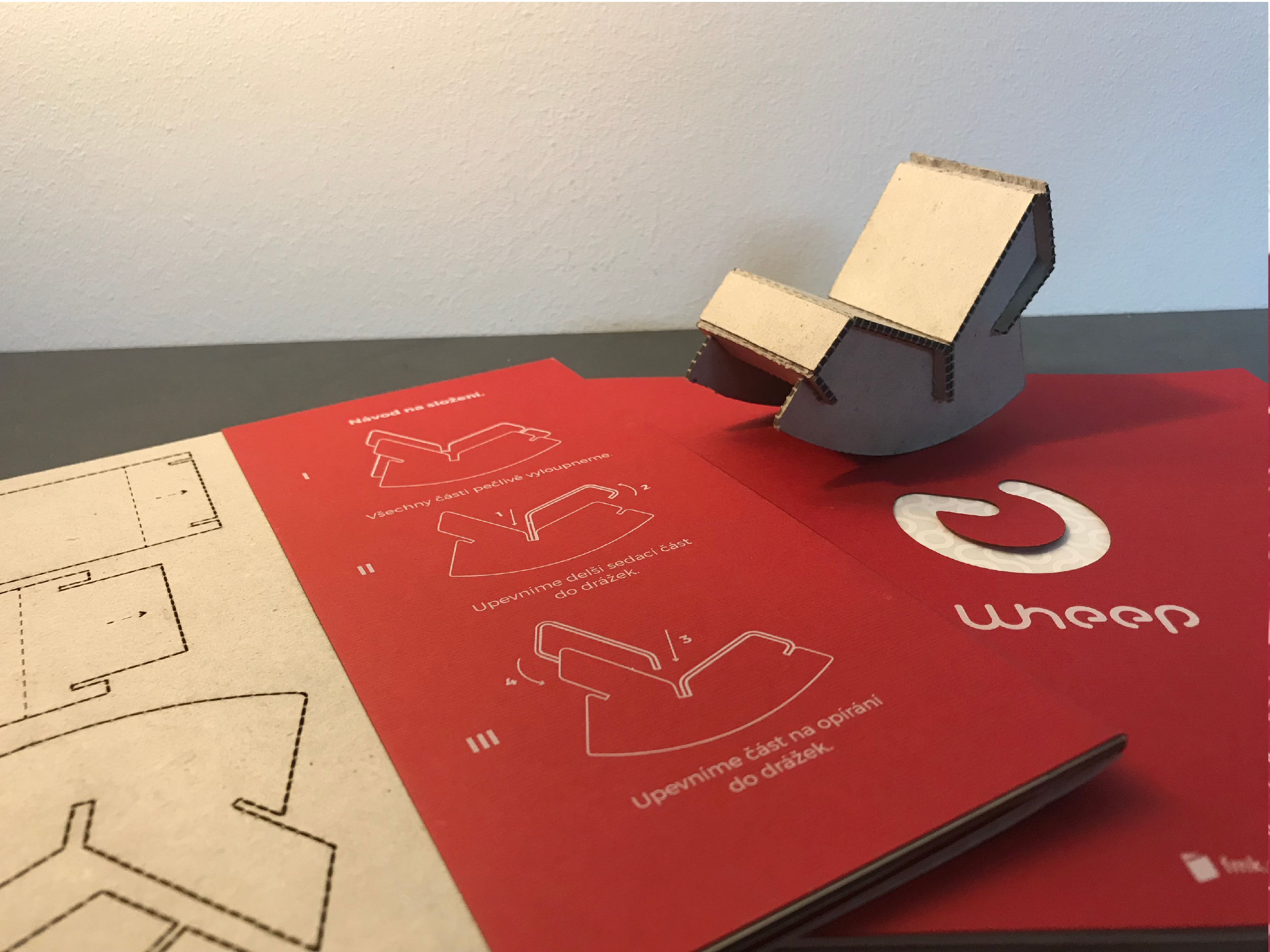 Papírové křeslo Wheep je výsledek společné práce s ateliérem Produktového designu. Po konzultaci s autorkou jsme se rozhodli kromě navrhnutí vizuálního stylu o výstup ve formě výstavního katalogu produktu s použitím rozšířené reality.