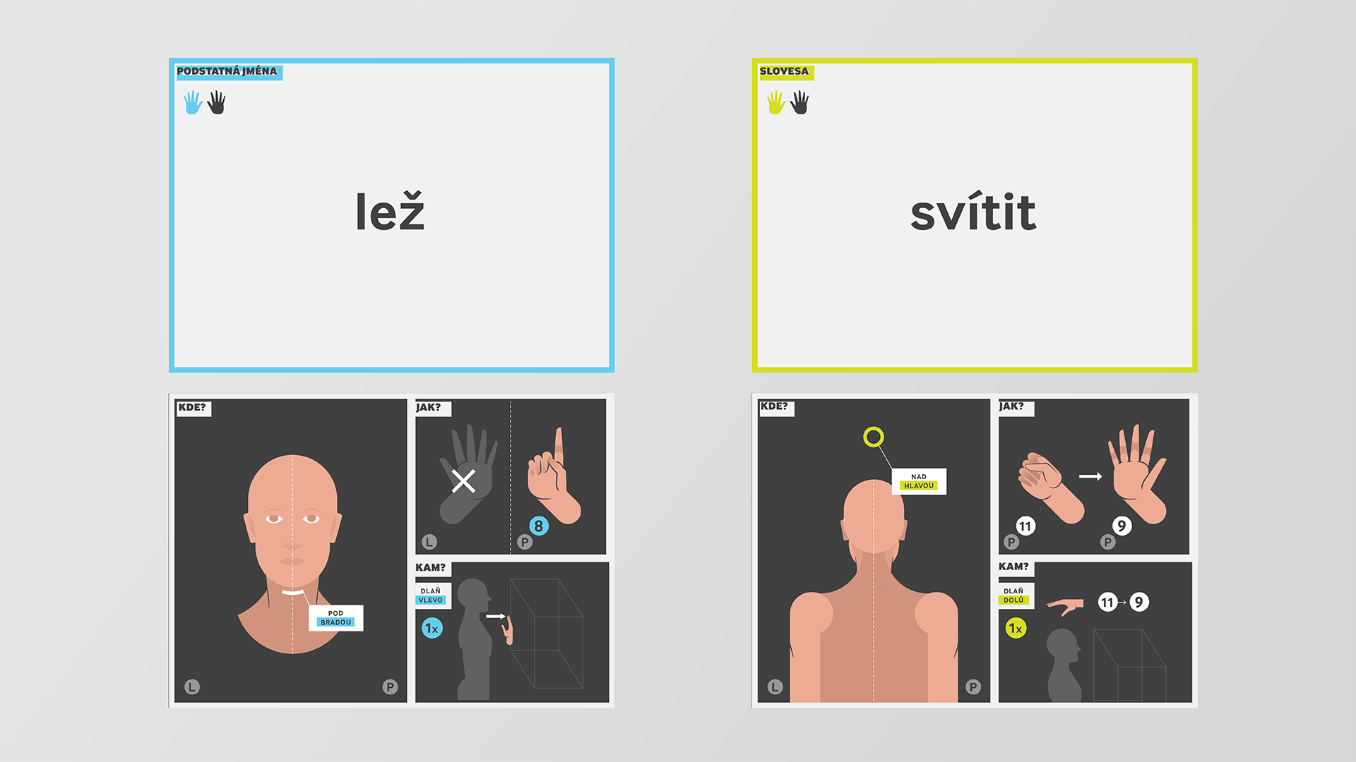 Naučiť sa český znakový jazyk nie je vôbec jednoduché. Zistila som to počas návštev kurzu znakového jazyka, kedy som prichádzala na mnohé úskalia jeho zápisu - respektíve v jeho absenciu. Navrhla som systém ilustrácii zobrazovania jednotlivých znakov-posunkov znakového jazyka, ktoré je možné ďalej využiť v tlačenej i online verzii.
