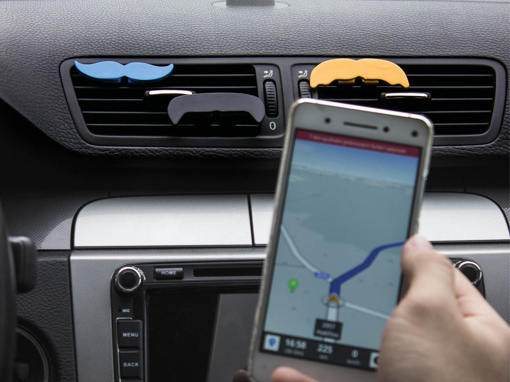 Magnetický držák na mobilní telefon do mřížky ventilace automobilu je pojmut jako minimalistický doplněk s důvtipem. Na výběr je ze tří druhů knírku ať už podle osobní preference nebo stylu jízdy. Zároveň tím zákazník může podpořit charitativní akci Movember částkou z celkové ceny.