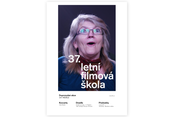 Při tématickém hesle "Vítejte ve filmovém ráji" se mi vybavila projekce filmu v kině a zářivé plátno, na které je film promítán. Po dalším přemýšlení jak tento úkol zpracovat, jsem došla k závěru, že film je tvořen lidmi pro lidi, proto jsem se rozhodla pracovat právě s nimi, konkrétně s jejich výrazy. Základním prvkem zpracováni vizuálu pro LFŠ je tedy soubor fotografií, na kterých jsou zachyceny různé výrazy osob sledujících film. Fotografie jsou koncipovány tak, aby navozovaly atmosféru podobnou té při promítání v kině.