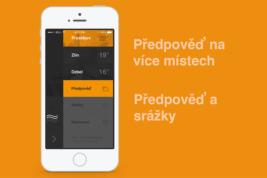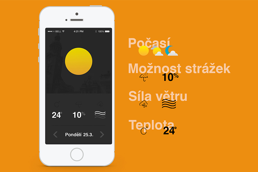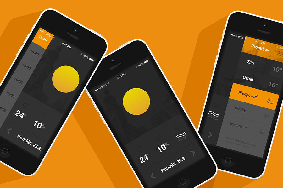 Návrh mobilní aplikace pro počasí WeatherApp. Účelem je co nejpohodlněji zobrazovat základní informace o počasí jako jsou teplota, srážky a síla větru.