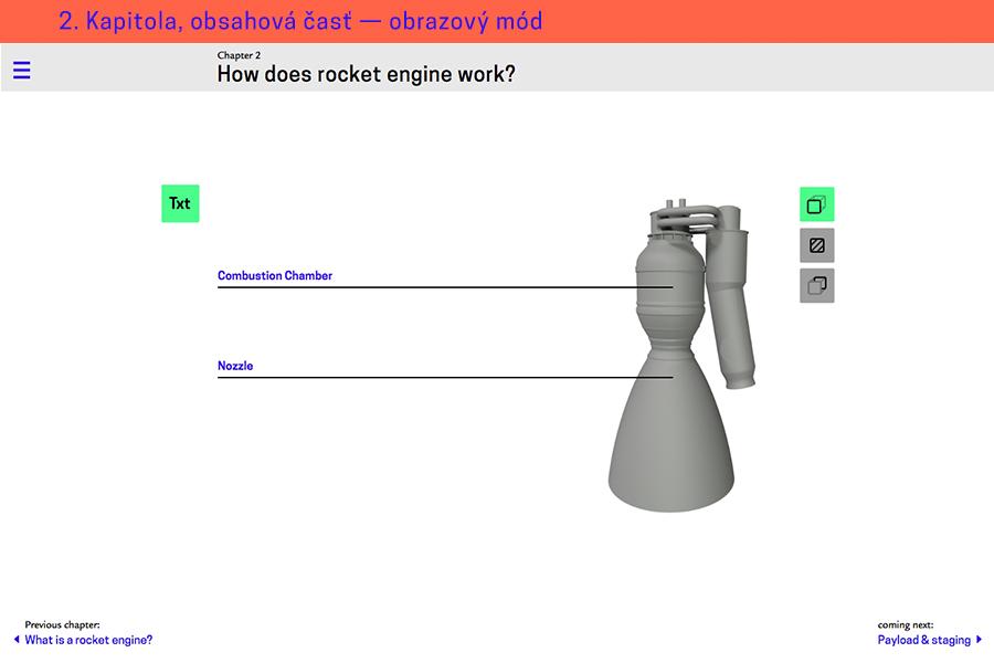 V obrazovom móde, ak to konkrétna ilustrácia umožňuje, môže čitateľ prepínať medzi rôznymi uhľami pohľadu a objavovať detailnejšie informácie o jednotlivých súčiastkách/javoch. Na nižšie uvedenom odkaze môžete otestovať funkčný prototyp knihy.