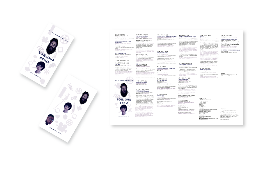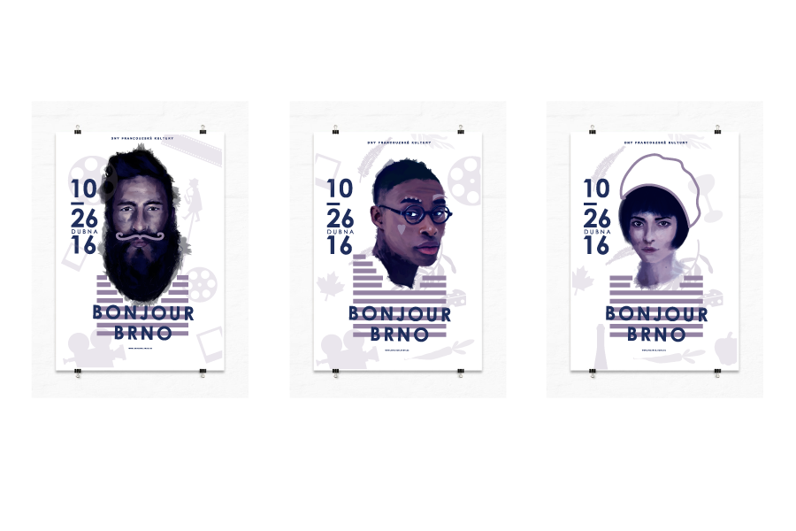 Tvorba jednotného vizuálneho štýlu festivalu Bonjour Brno na tému frankofonních zemii: (Quebec, Belgie, švycarska, Afrika) Návrh vizuálneho štýlu bol následne vybraný a realizovaný v roku 2016.
