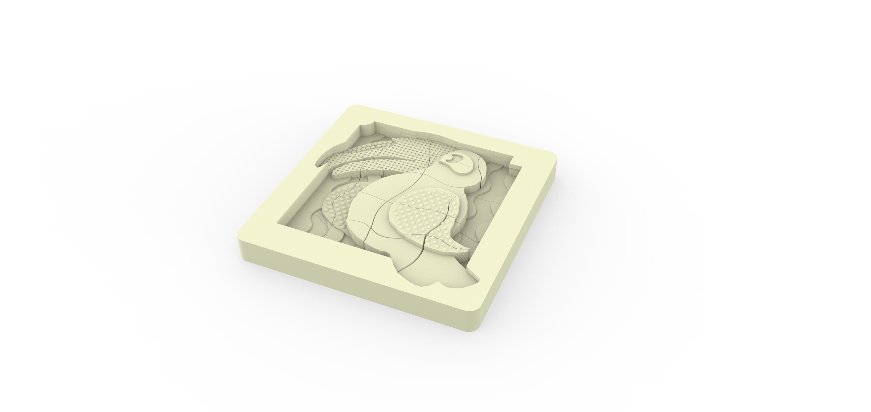 Dvacetidílné puzzle speciálně upravené pro osoby se zrakovým postižením s motivem tukana. Nejdůležitějším prvkem jsou struktury, které nahrazují jednotlivé barvy motivu. Návrh se snaží především zohlednit speciální potřeby, které cílová skupina vyžaduje. To se odráží v jednotlivých aspektech designu, jako jsou rozměry, povrchová úprava nebo samotné rozdělení dílků. Finální výrobek je tištěn na 3D tiskárně.