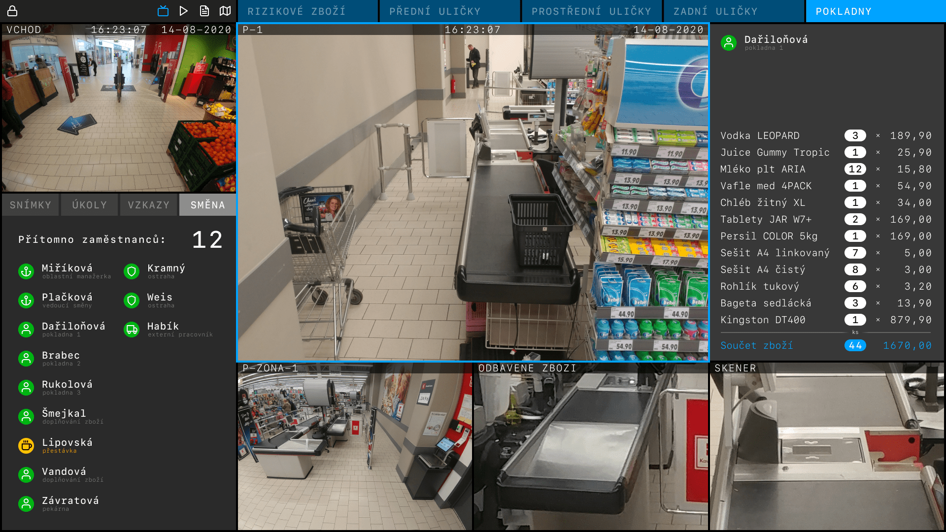 Bezpečnostní systém, který je určen pro nasazení v obchodních řetězcích. Je rozdělen do čtyř pracovních režimů, zahrnuje elektronickou strážní knihu, databázi pachatelů, a další užitečné funkce, které mají usnadnit a urychlit práci strážného. Při tvorbě jsem vycházel z vlastních poznatků a zkušeností, protože jsem jako strážný pracoval ve třech různých prodejnách a s mnoha technickými systémy.