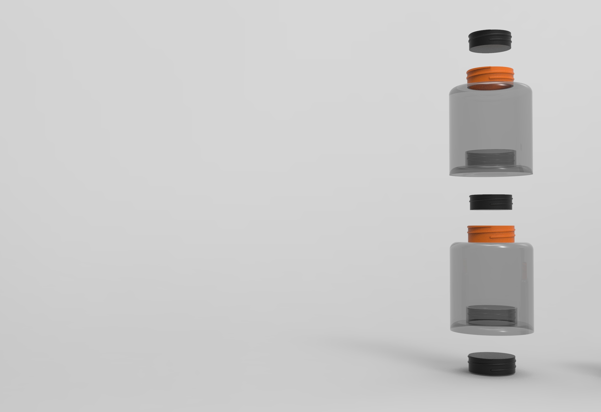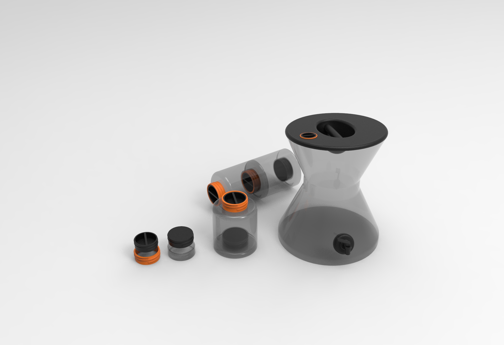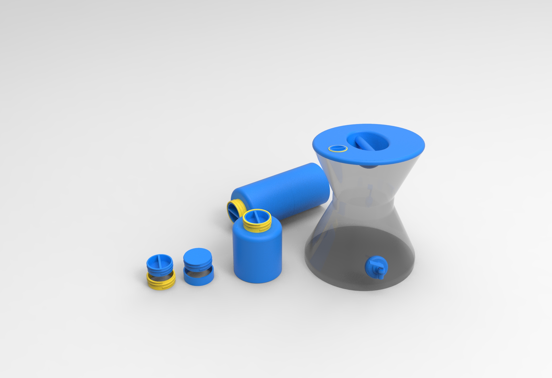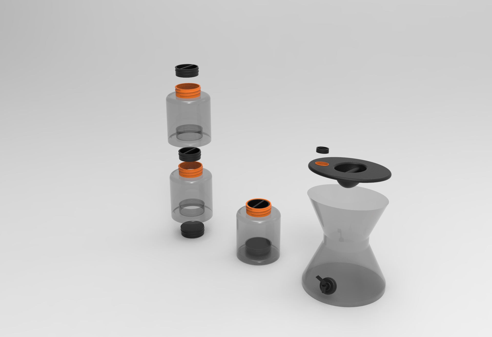 Koncept práce, bolo vytvoriť jednu fľašu, do ktorej sa dajú vložiť dve tekutiny bez toho aby sa zmiešali, ale zároveň som chcel, aby sa dali spojiť, používať ako jedna nádoba a aby fungovali aj ako samostatný produkt.