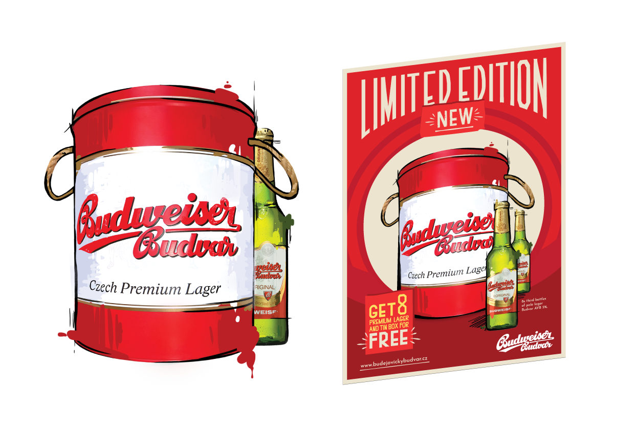 Pre súťaž Popai - Budějovický Budvar sme mali vytvoriť predstavenie ich nového atraktívneho multipacku. Vytvorila som sériu inzerátov, v rôznych farebných prevedeniach. Inšpirovala som sa retro štýlom, kde som do pozadia zakomponovala pohľad na multipack zhora.