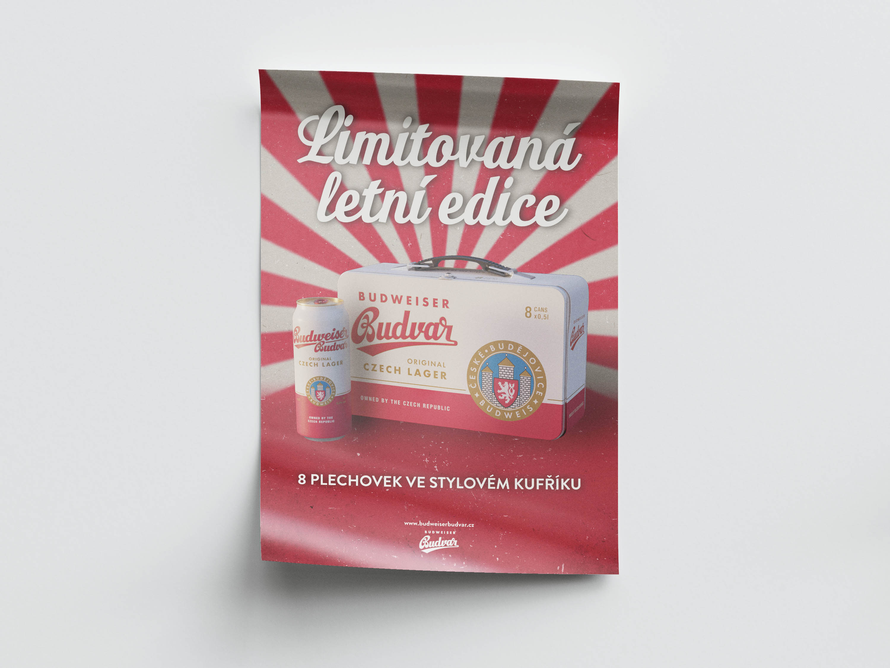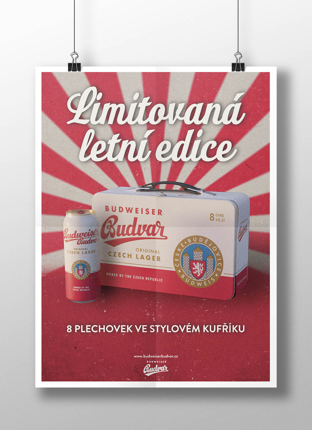 Pro soutěž Popai jsme měli za úkol vytvořit letní propagační plakát za účelem podpoření novinky ve formě kufříku. Zákazník si tedy neodnesl pouze 8 plechovek Budvaru, ale i stylový kufřík. V mém návrhu jsem se inspirovala pruhovanými skládacími lehátky které jsou pro mne v letním období velmi význačné. Celý návrh je proto záměrně v letním retro stylu, který navozuje příjemný den u vody. Návrh je také v typických barvách Budvaru a proto produkt dokonale sedí do vytvořeného pozadí.