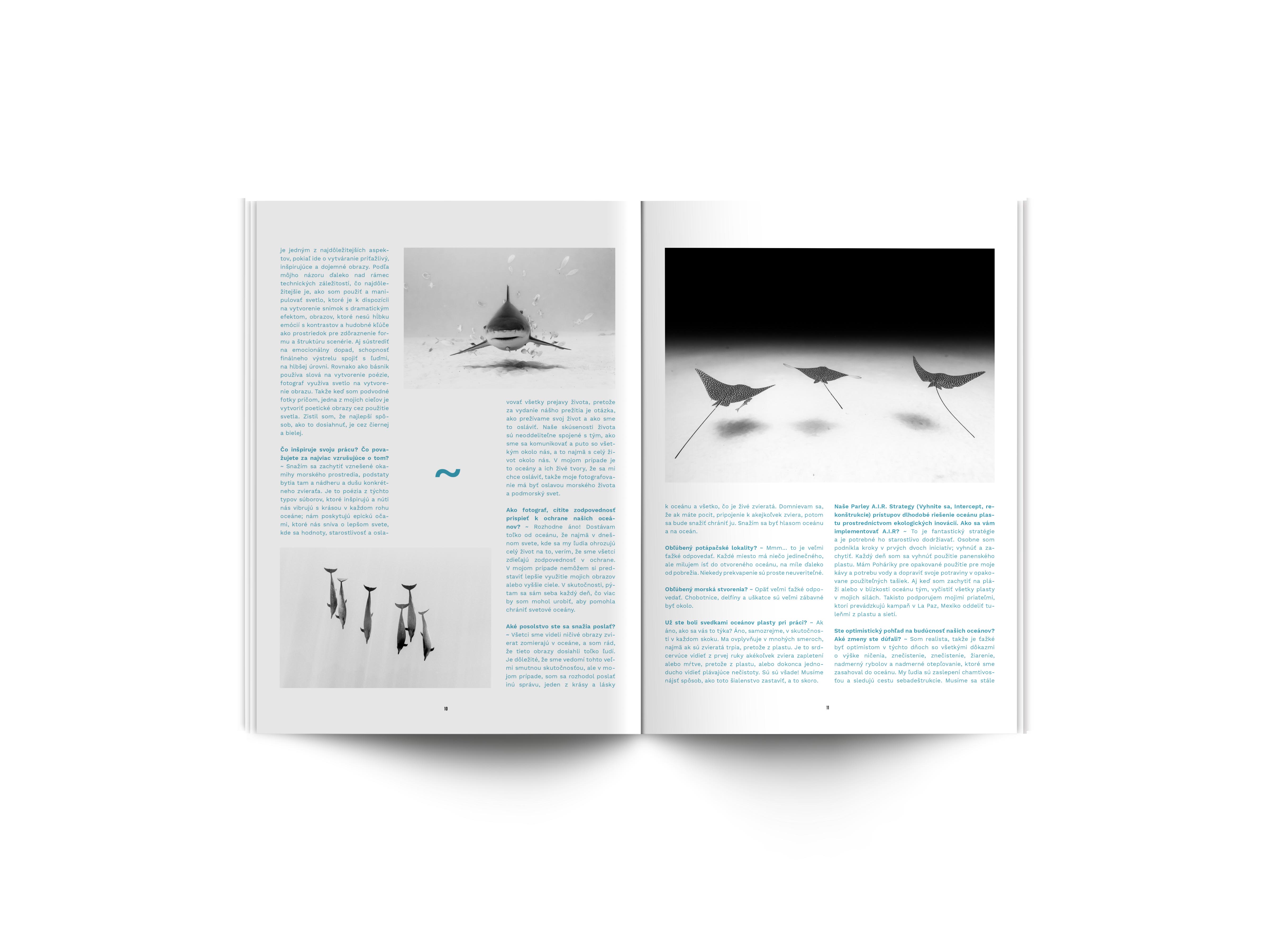 Layout of a magazine with the theme of ocean protection. I’ve created my own font and then I’ve use it in the magazine, where tilde is the main typographic character.