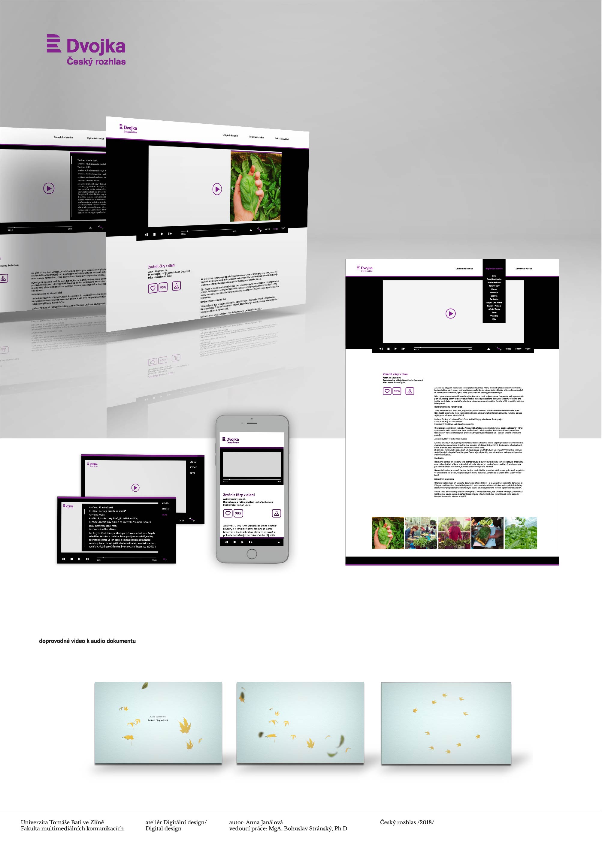 Změnit čáry v dlani. Inspiraci jsem hledala v motivech přírody a volnosti. Při čemž tyto slova nejvíc vystihují tuto audio nahrávku. Základem mé práce je design webu a doprovodná ukázka videa. Nechtěla jsem drobnější znázorňování děje v nahrávce, myslím že by si každý měl ve své fantazii představit tento děj sám. Zároveň jsem zapojila do videa textové postřehy, zpěv nebo myšlenky. Tyto podměty by měly udržet diváka u videa.