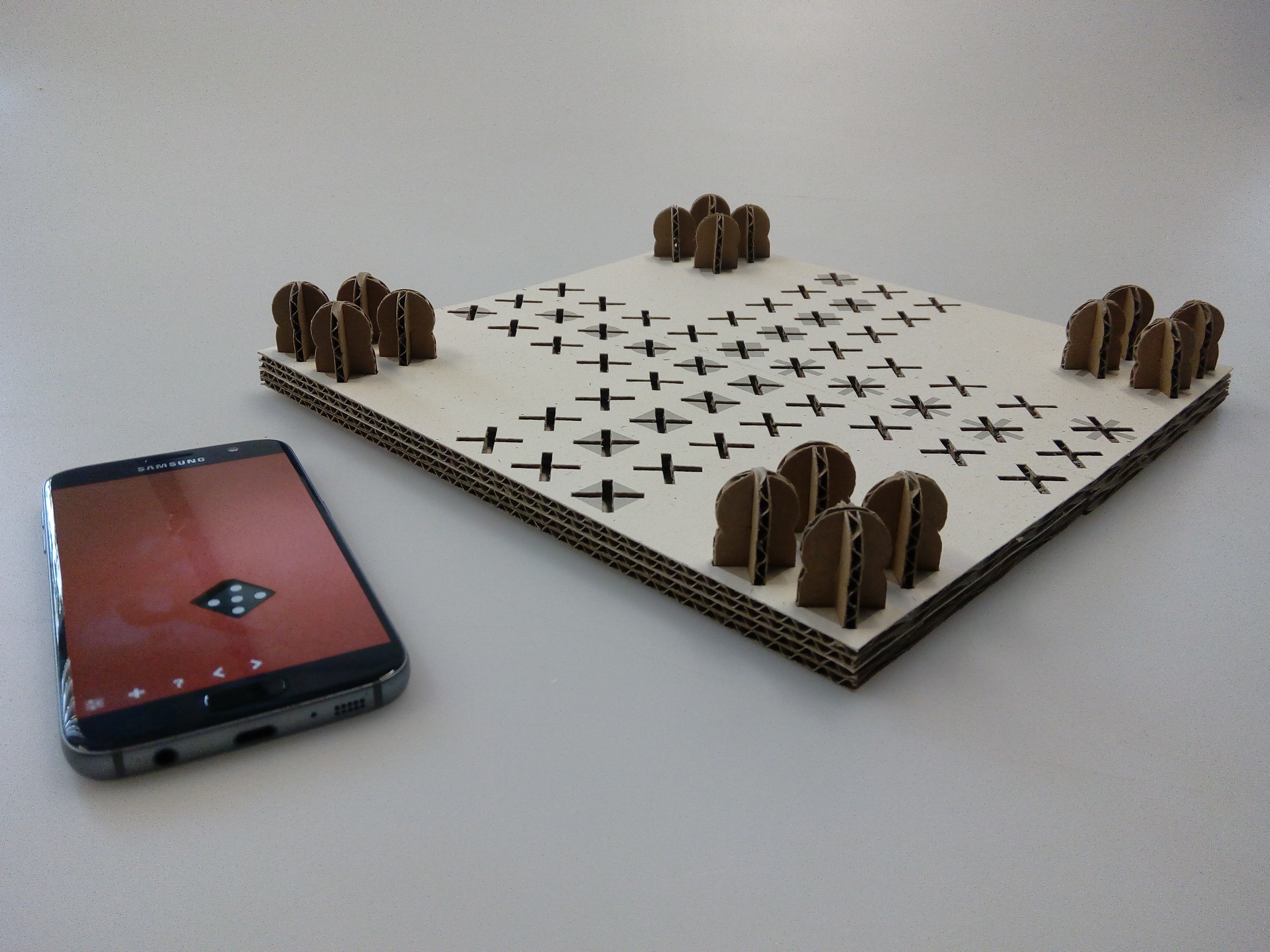 Cestovní "Člověče, nezlob se!" je vyrobené z několika vrstev lepenky a kartonu. Figurky jsou tvořeny dvěma protikusy, které se spojí do kříže. Desku (vnitřní část obalu) tvoří 2 vrstvy lepenky, ve které jsou vyřezány křížky jako fixace figurek a potištěný karton, který zároveň tvoří pro obě poloviny spojovací kus. Tato část je od vnější oddělena vrstvou kartonu a skládá se také ze dvou vrstev lepenky. Taktéž tato část obalu nabízí prostor pro figurky, které se po rozložení jednoduše zamáčknou do lepenky a celý obal se zafixuje papírovým návlekem. Jednotlivé "barvy" hráčů na hrací ploše i na figurkách jsou odlišeny čtyřmi různými tvary. Téměř každý, když někam jede má u sebe mobilní telefon, proto jsem volila kostku elektronickou (aplikace v telefonu). Také z toho důvodu, že v dopravních prostředcích je to jednoduchá varianta jak hrát a při tom nehledat kostku po každém hodu pod sedačkami. Pro jednodušší hledání by mohl být na návleku vytištěný (popř. gravírovaný nebo jinak zpracovaný) QR kód aplikace kostky.