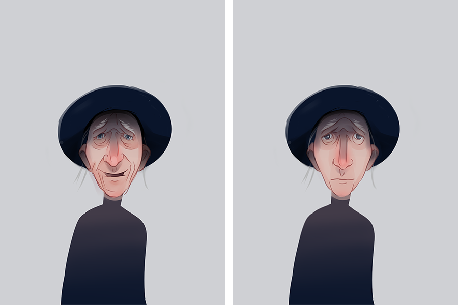 Cieľom individuálneho zadania bolo osvojenie si nových techník digitálnej maľby, základom anatómie a princípov konštruovania postáv. Zoznámila som sa s novým grafickým nástrojom Paint Tool Sai, kde som vytvorila návrh postavy podľa predpripravených skíc nakreslených ceruzou. Inšpiráciou mi bola účasť na Bratislava GameJam, v rámci ktorého som pracovala na hre a navrhla vizuálnu podobu a animácie hlavného hrdinu. Jedná sa o podobu smutného starého pána v klobúku.