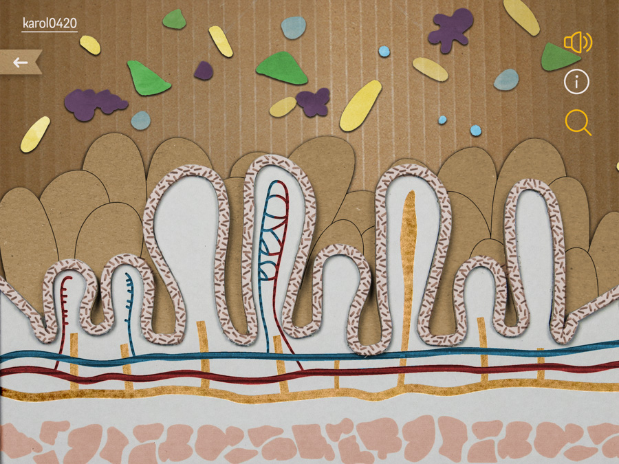 Concept of educational app for kids in elementary school, specifically about digestive tract.