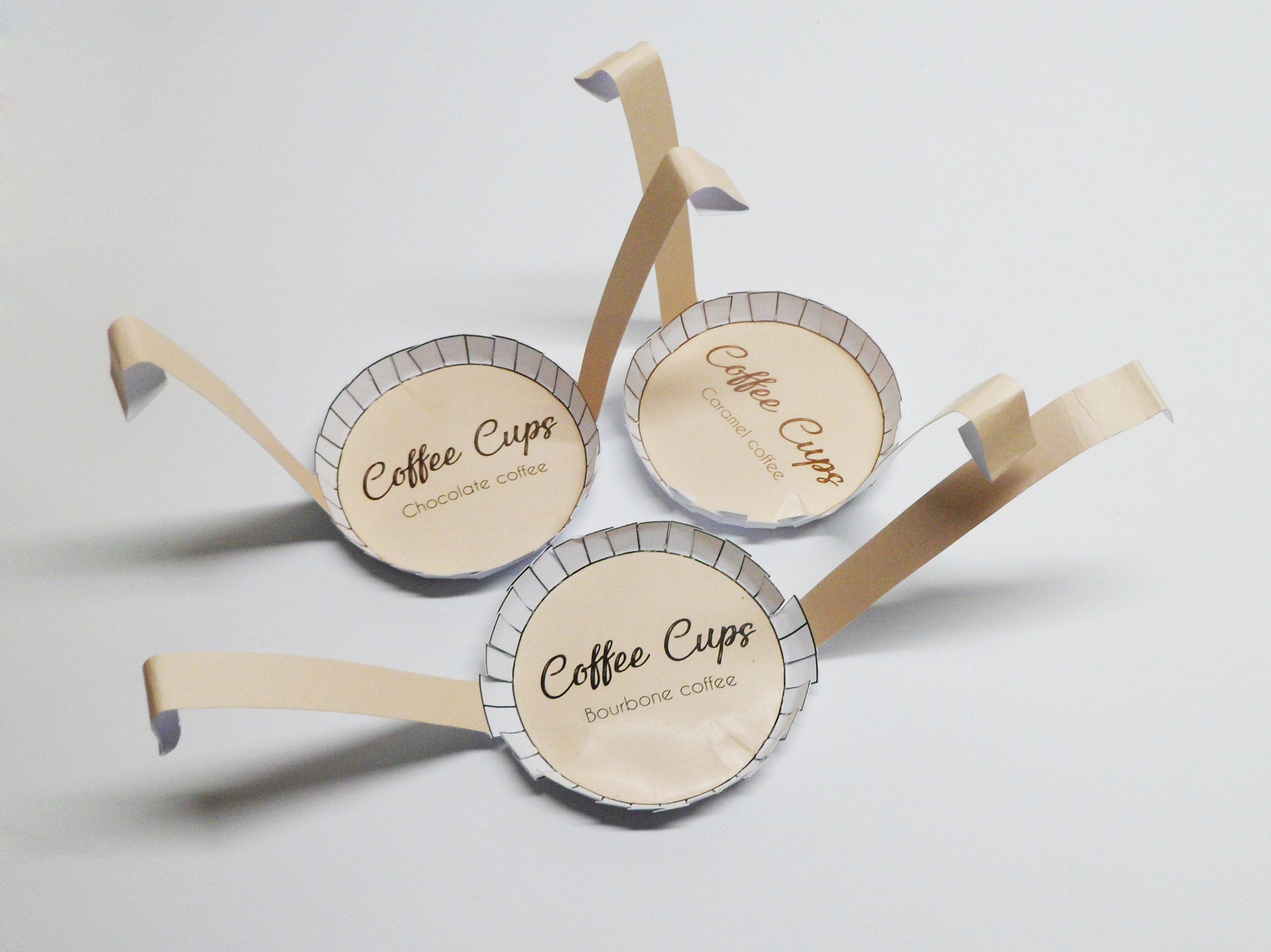 Degustační kelímky s jednou dávkou kávy, která se ukrývá v dvojitém dně kelímku, v obalu z filtrovýho papíru pro zamezení vysypání. Obal z filtru je kulatého tvaru, aby dobře pasoval do kelímku a to i při stohování. Druhé dno zamezí nečistotám a jeho úchyty hygienickému vyjmutí z kelímku. Po odstranění dna stačí 150 ml kelímek