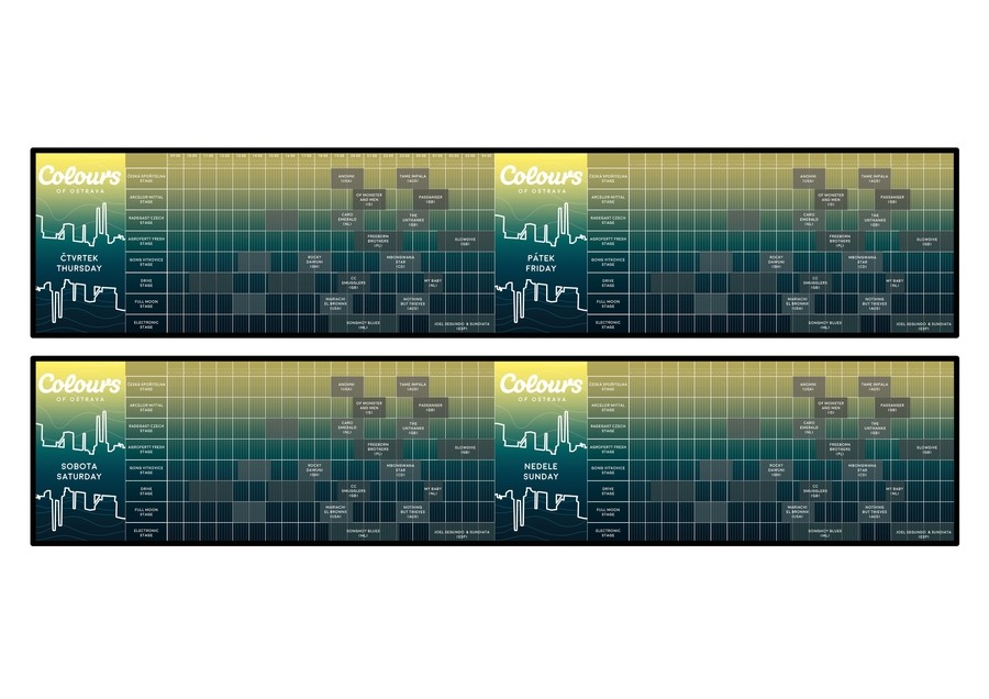 Visual style for music festival in Ostrava. This festival is unique because of the place where its situated, in the industrial zone on the perifery of the city Ostrava. I've made a silhouette of the zone that is characteric and the lines represent music vibes. I've created a coloring illustration that says: when you color it and share it on social medium you can win tickets for the festival. User can keep the flyer as a decoration and the main reason is to made it viral on the internet and be part of art promotion of the festival.