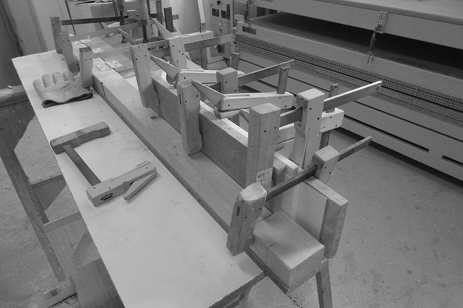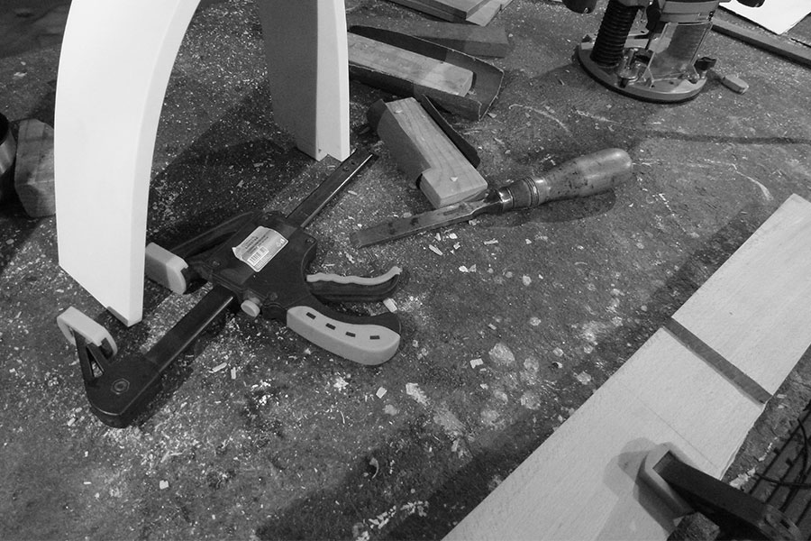 Cieľom materiálovej skúšky k bakalárskej práci - Multifunkčný interiérový prvok bola kombinácia materiálov Corian & drevo, ich spoje a samotné spracovanie.