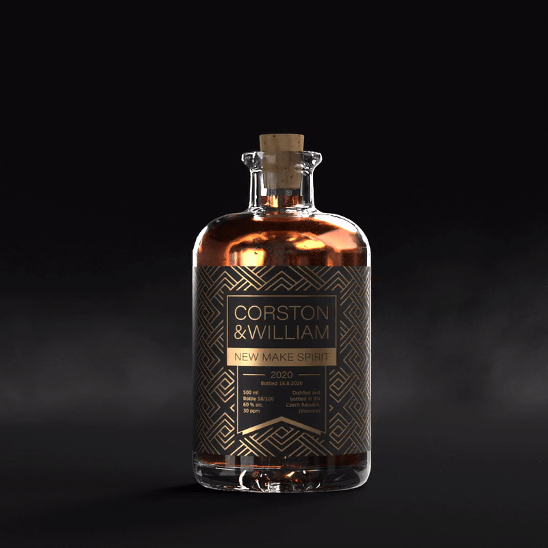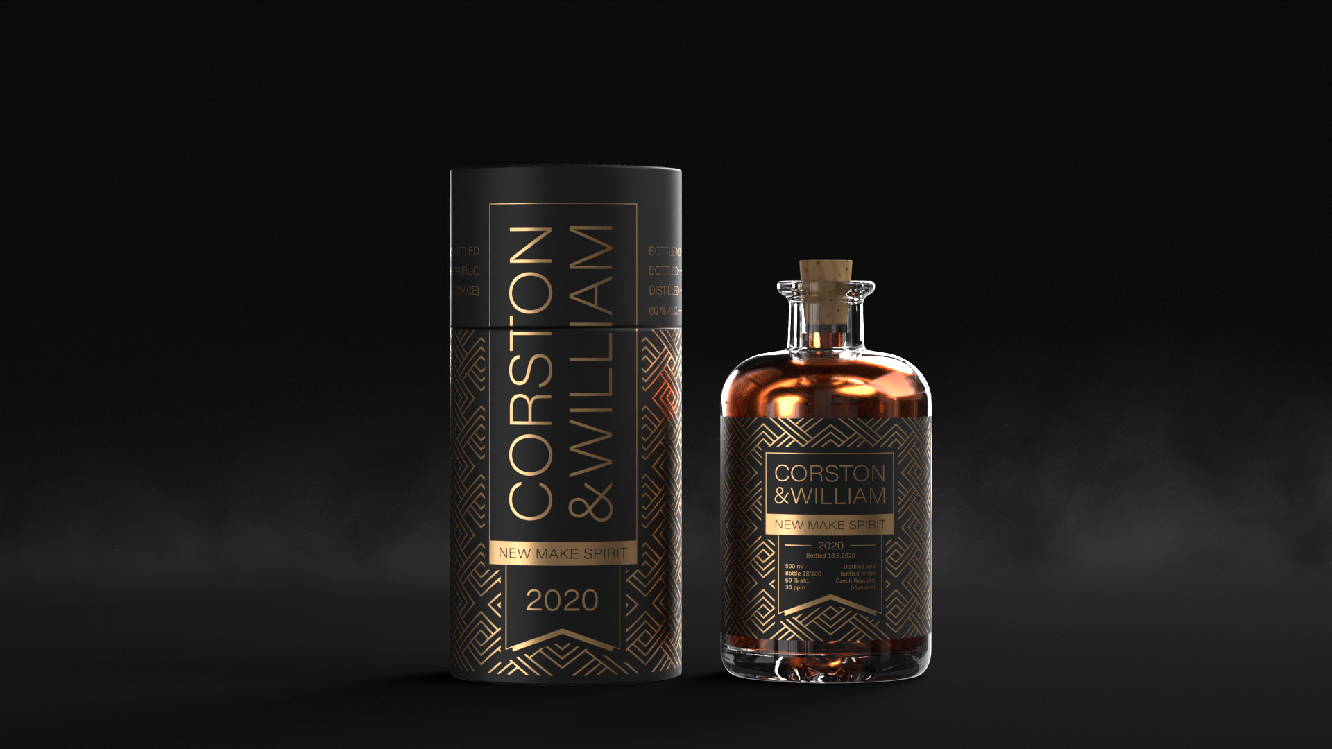Vizuální identita a obalový design pro novou českou značku whisky Corston & William. Hlavním prvkem je čistý čárový vzorek, připomínající keltský uzel, vyvedený v luxusní kombinaci černé a zlaté.
