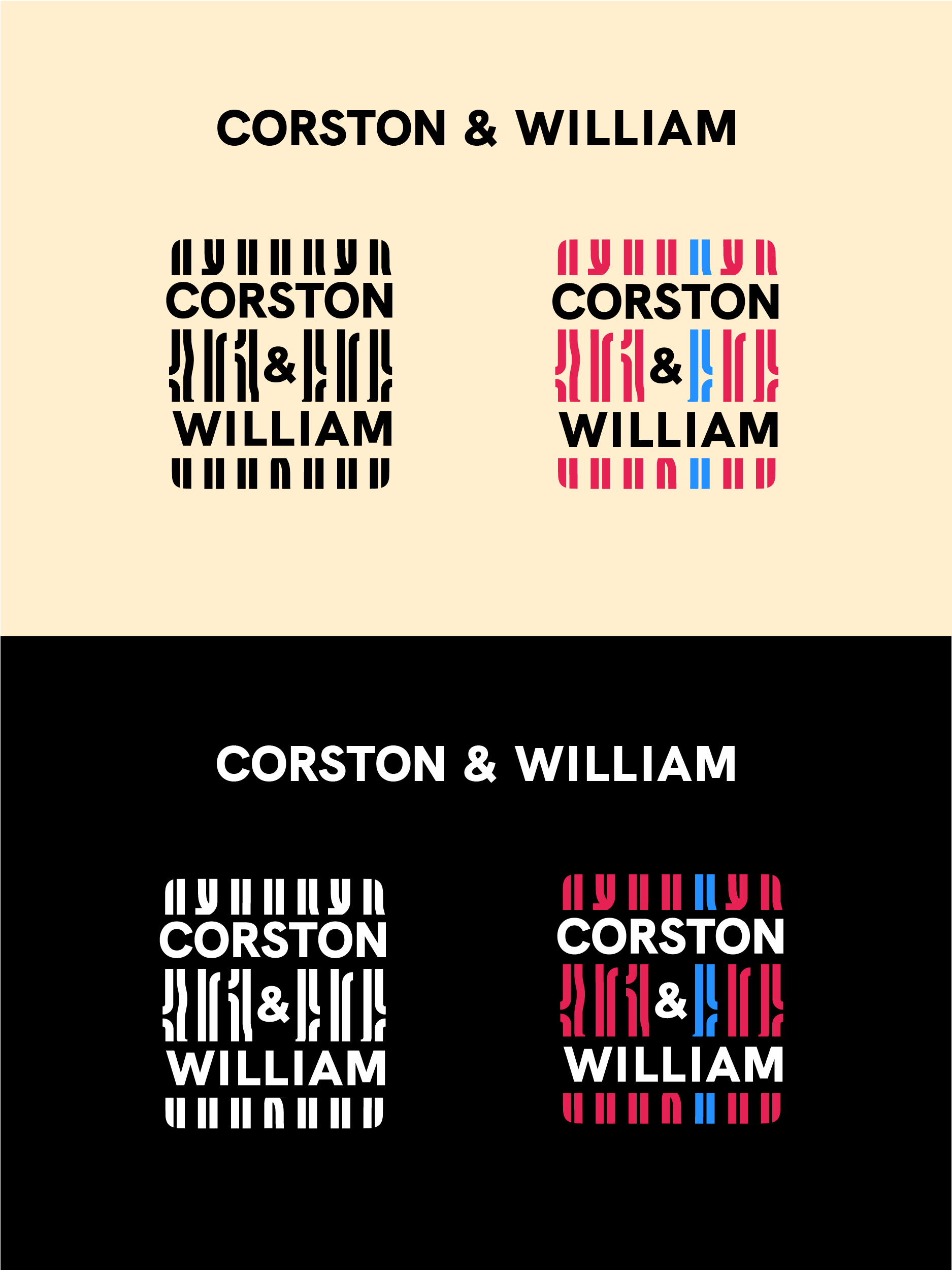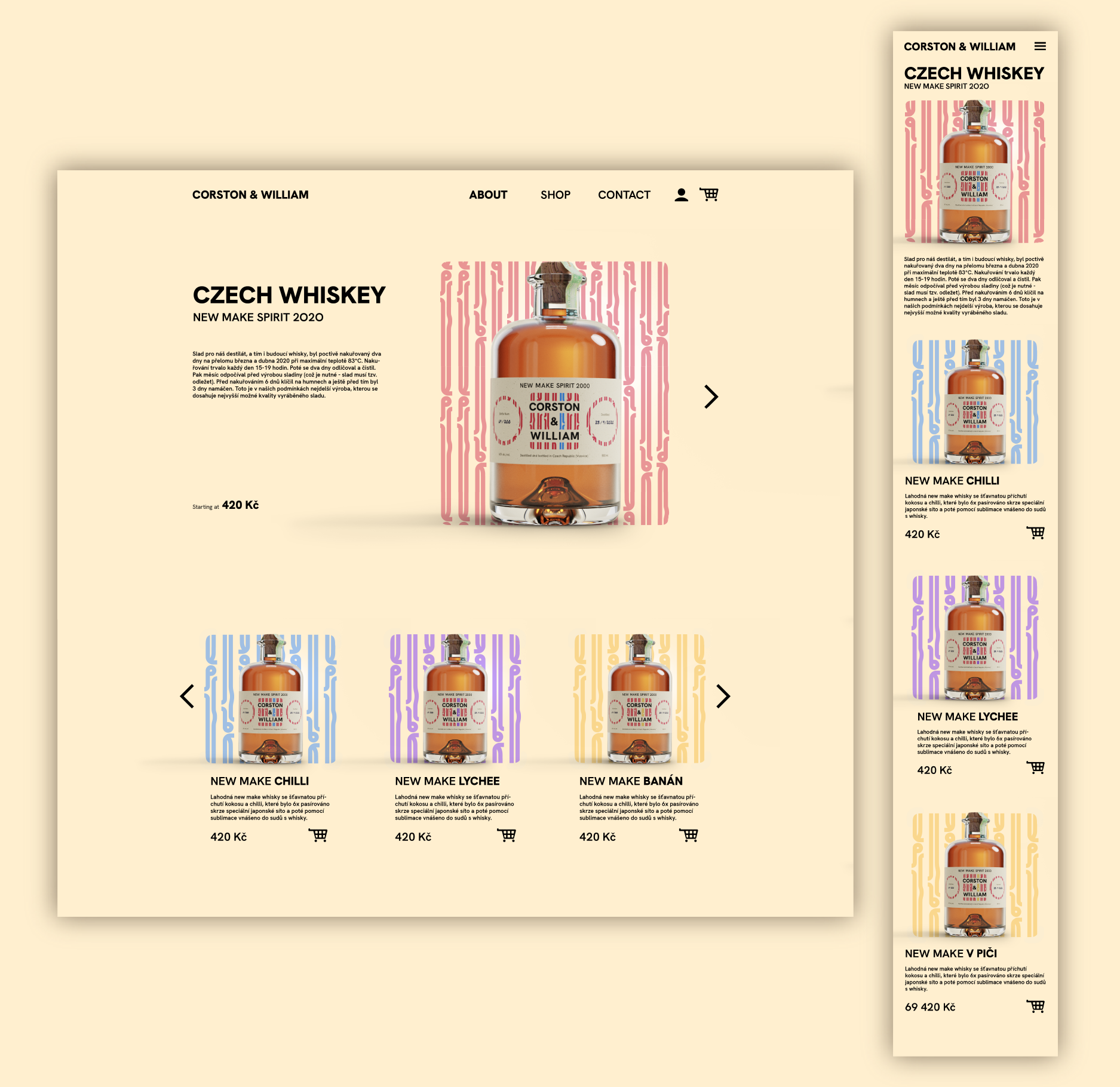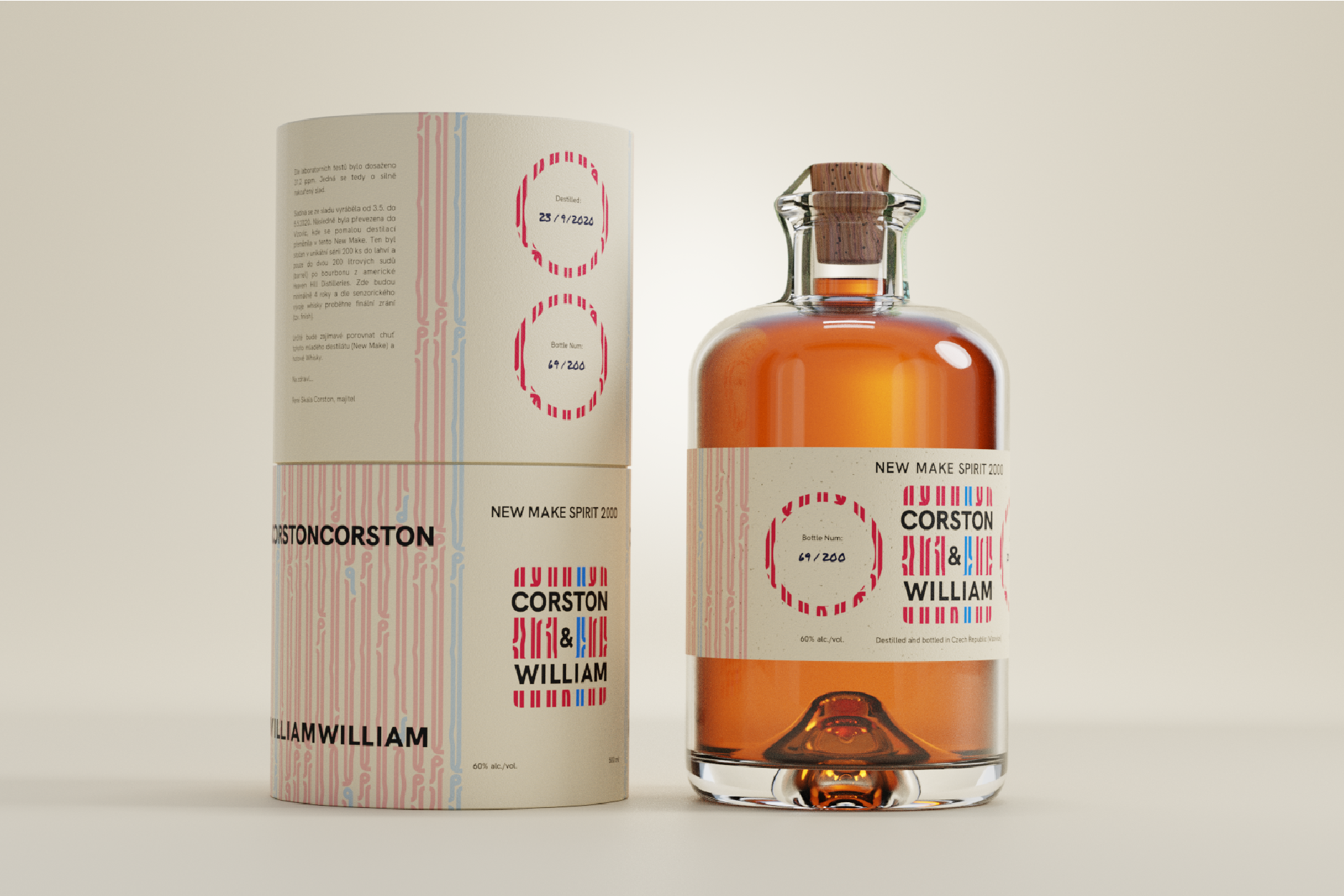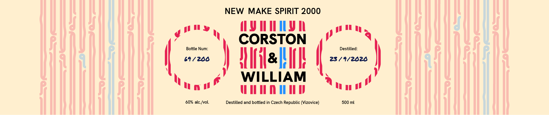 Vizuální styl nové české značky whiskey Corston & William. Snažil jsem se o nápaditý vizuál, který pomocí saturovaných barev vynikne mezi ostatními. Vizuál vychází především ze stylizace dřeva ze sudů. Vizuál je lehce modifikovatelný a lze jej aplikovat na veškeré kategorie designu.