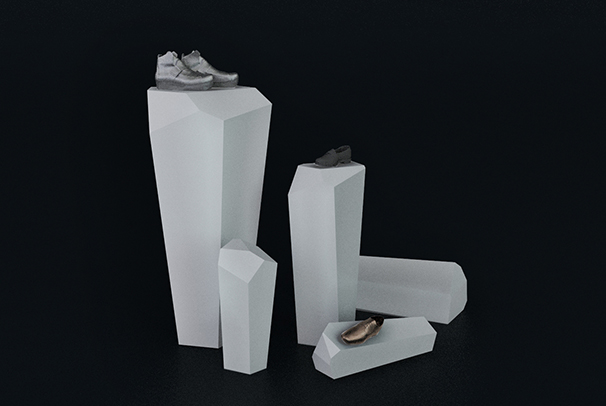 Základný modul pozostáva z troch druhov kryštálov, rôznych veľkostí. Ich vzájomnou kombináciou—otáčaním môže užívateľ vytvoriť množstvo kompozičných variácií. Stojan je prístupný zo všetkých strán, výstavná plocha je navrhnutá pre vystavenie páru obuvi.