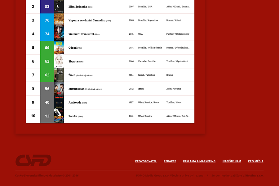 U redesignu ČSFD jsem se zaměřil na lepší orientaci mezi hodnocenými filmy a přehlednější vyhledávání v žebříčcích.