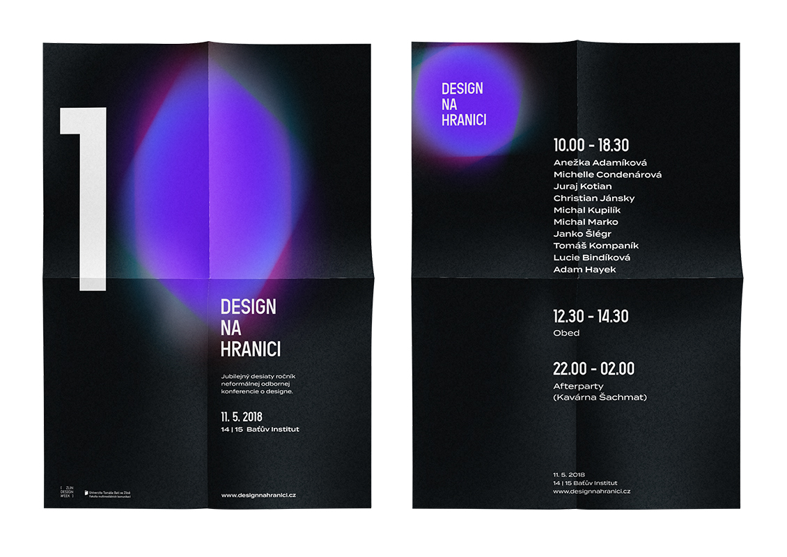 Design na hranici je neformálna odborná konferencia o designe, ktorú organizujú študenti ADD a ADE. Týmto rokom je výnimočná a to hneď z dvoch hľadísk. Prídu úspešní absolventi našej fakulty a je to navyše jubilejný desiaty ročník tak prečo to nespojiť? Vizuál sa odvíja od úspechu absolventov, ktorý je znázornený "žiarou úspechu", elementom ktorý sa po opustení školy zmenil zo všedného - obyčajného na tak žiarivý ako len môže byť! Prejsť cez bránu úspechu a zažiariť je pre absolventa mimoriadne dôležité.