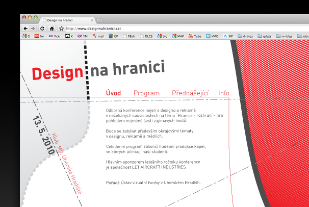 Návrh riešenia vizuálu konferencie Design na hranici. Plagát, pozvánka, microsite.