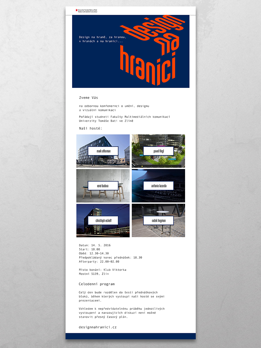Vizuální styl odborné konference o designu a vizuální komunikaci.