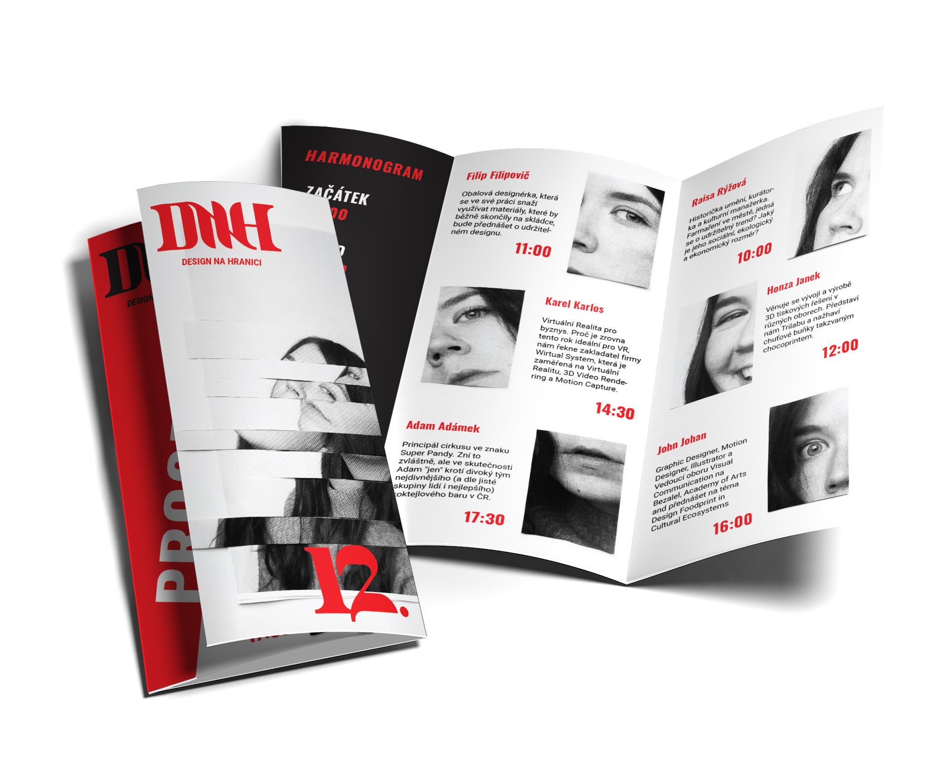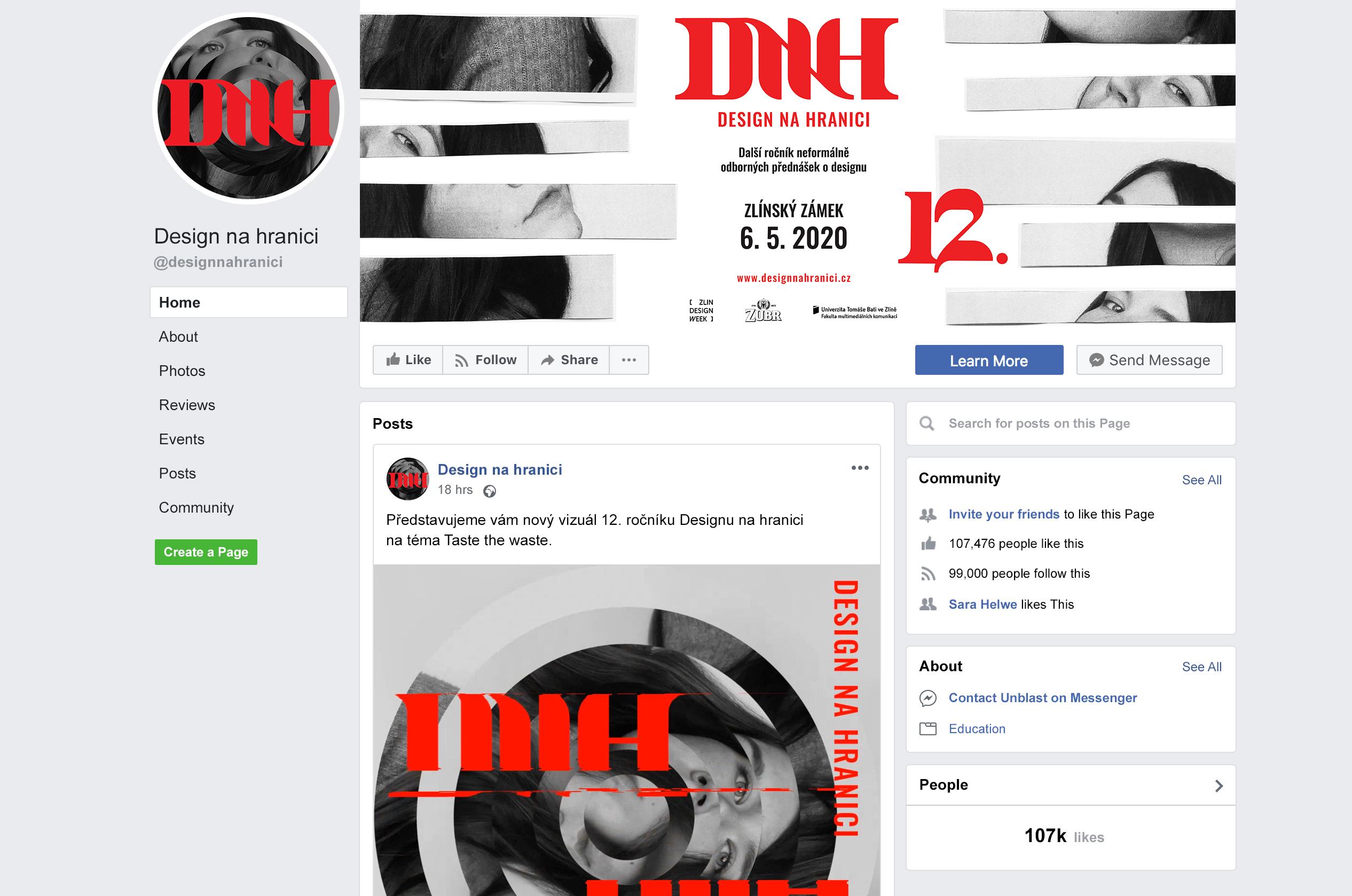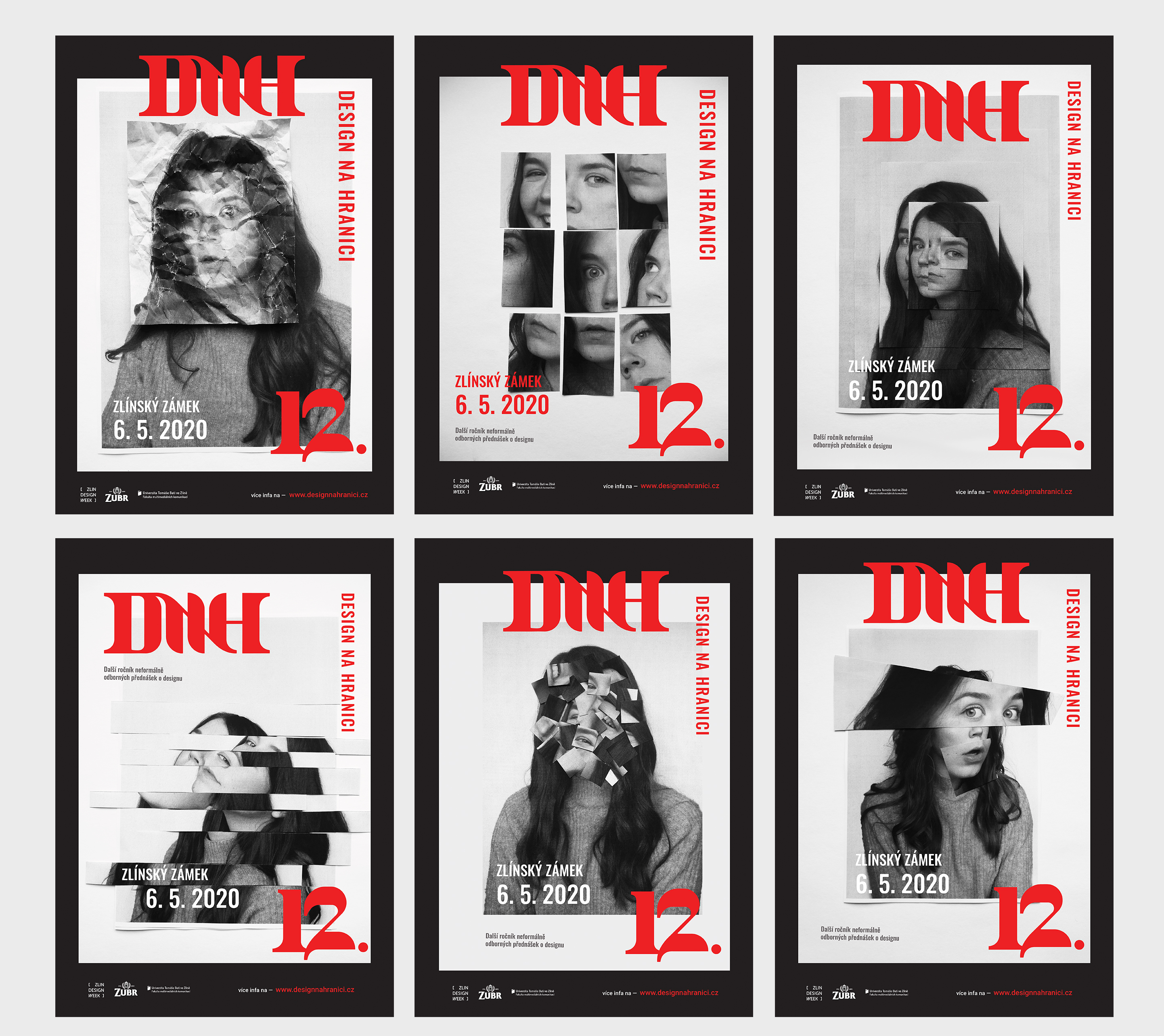 Design na hranici je neformální konference zaměřená na přednášky designerů a 12. ročník se nese ve znamení taste the waste. Rozhodla jsem se celý vizuální styl postavit na samotných přednášejících, bez kterých by žádná konference ani nebyla možná. Z jejich fotek bych vytvořila koláže (nyní můj vlastní obličej sloužící pro ukázku), na kterých by je nebylo možné poznat, ale postupem času by se odhalovali široké veřejnosti. Koláže jsou vytvořené pomocí papíru, abych navodila dané téma taste the waste.