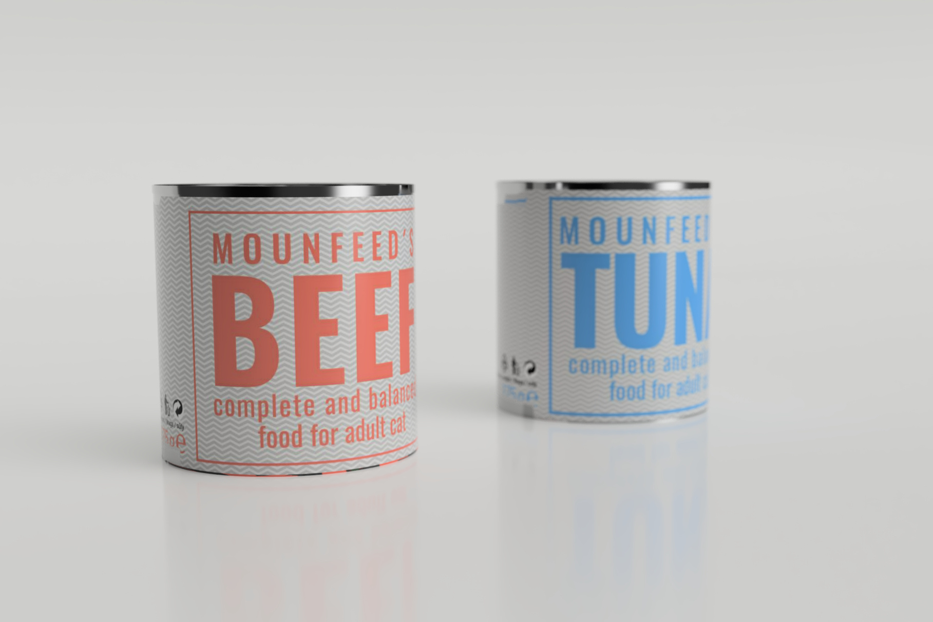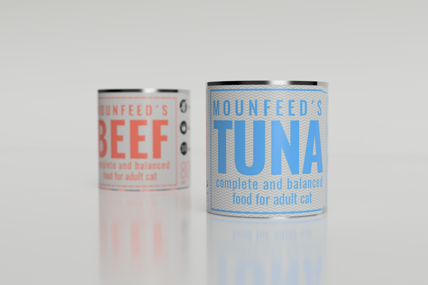 Design konzervy na kočičí žrádlo. Při tvorbě jsem dal důraz na jednoduchost, čitelnost a zajímavou typografii obalu. Cíl byl vytvořit netypickou konzervu, která bude v kontrastu s přeplácanými a nevkusnými konzervami, které už jsou na trhu.