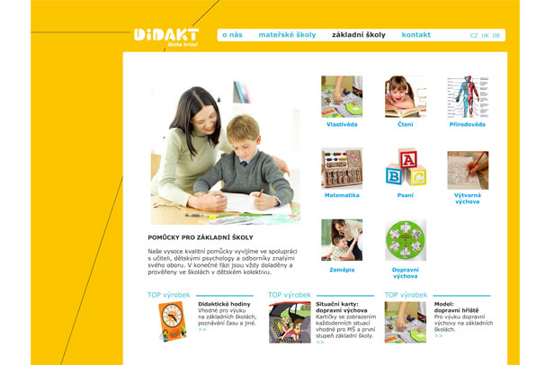 Vizuální styl společnosti zabývající se výrobou a distribucí didaktických pomůcek pro školy a školky.