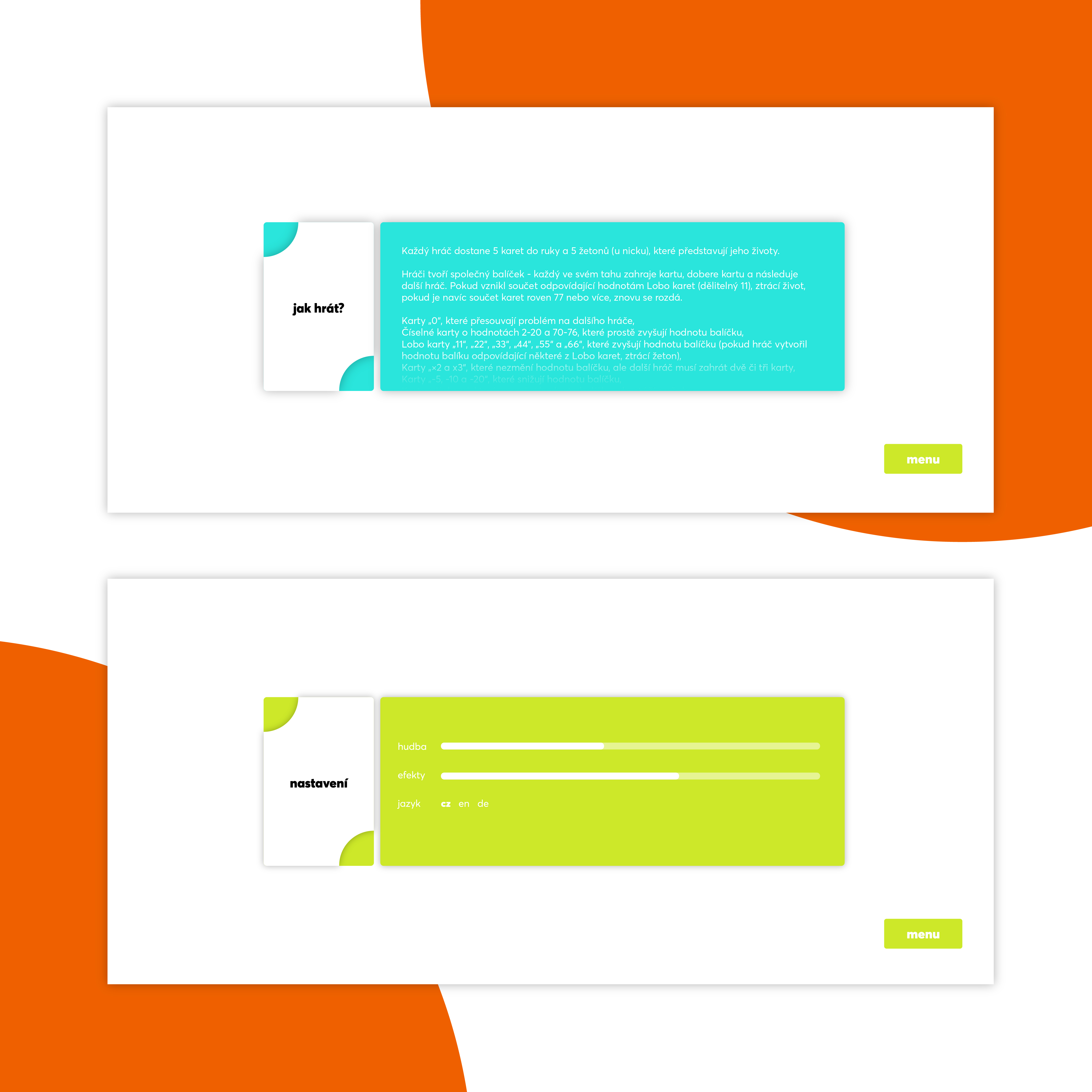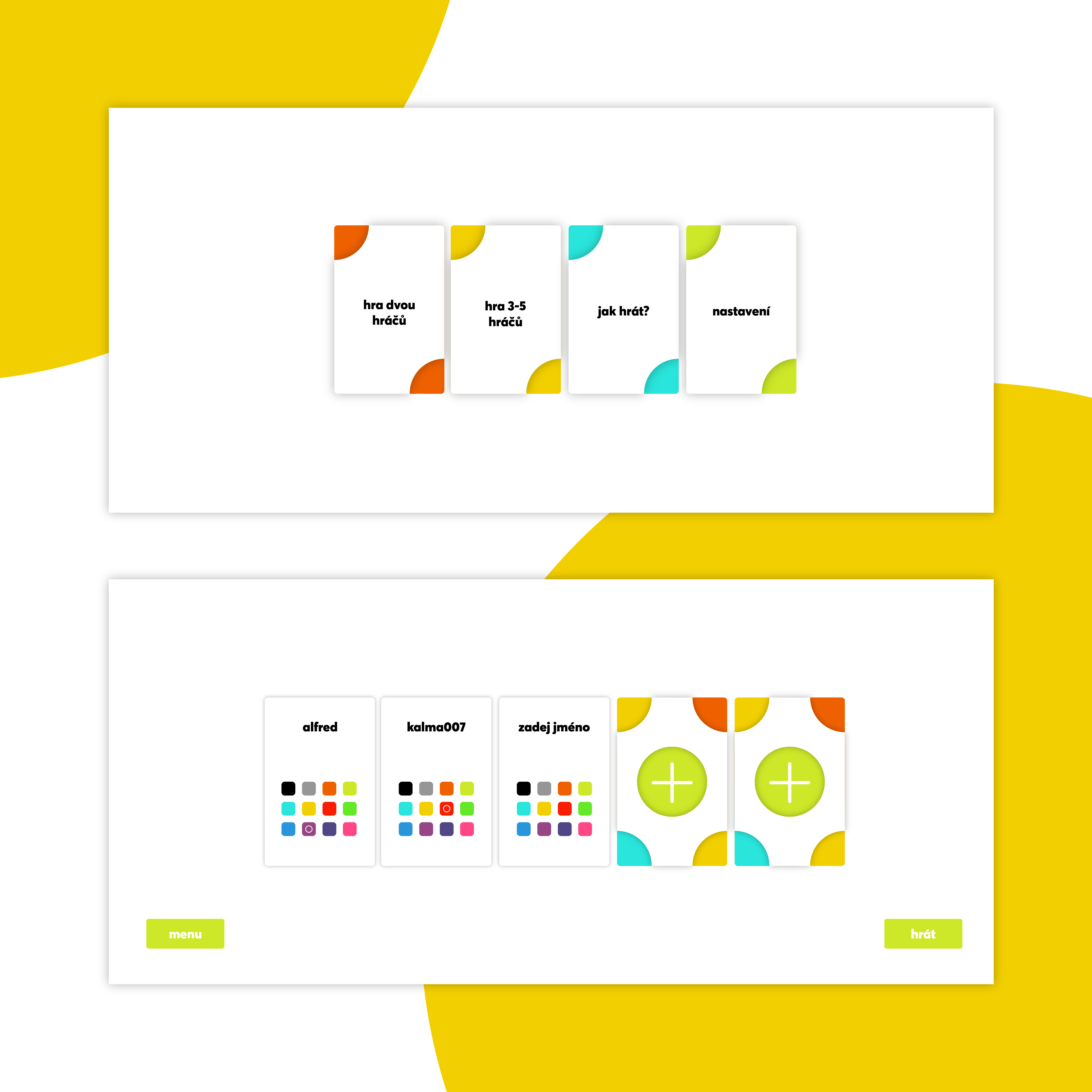 Při tvorbě jsem zachoval dětský výraz hry jako ho má i karetní verze, ovšem v posunu designu do geometrických tvarů, kde jsem vycházel hlavně z kruhů a obdélníků (jak nečekané u karet).