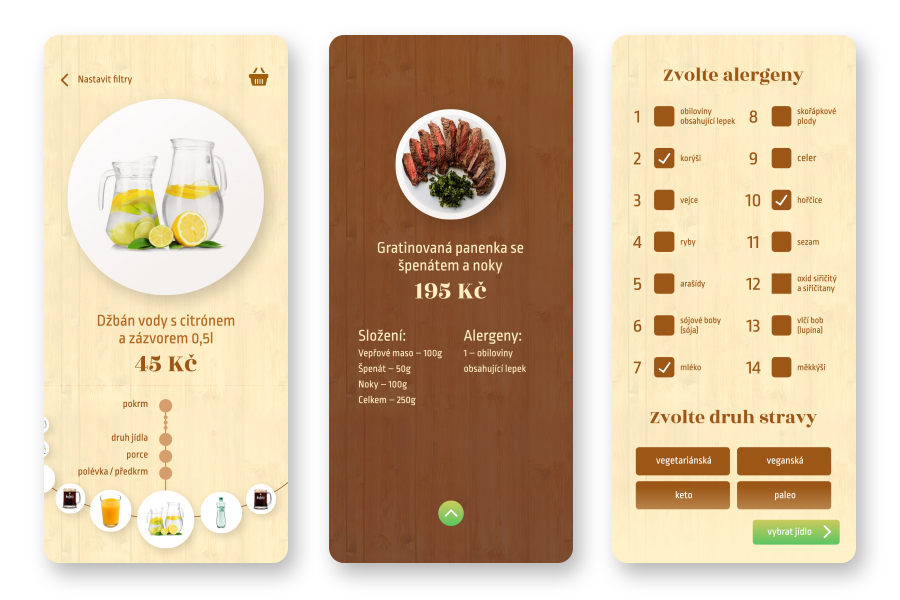 Digitální jídelníček je mobilní aplikace, přes kterou si uživatel může objednat jídlo v restauraci. Hlavním konceptem tohoto návrhu je vyvolat v uživateli pocit, jako kdyby už před ním bylo jídlo nachystané. Ovládání a samotný výběr funguje swipováním v dolní části obrazovky. Aplikace umožňuje i nastavení alergenů nebo speciálních diet.