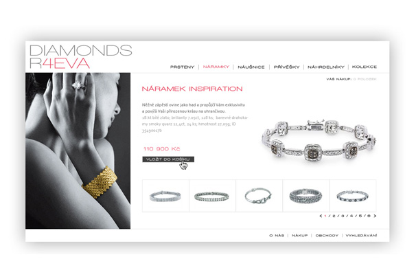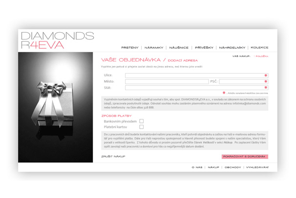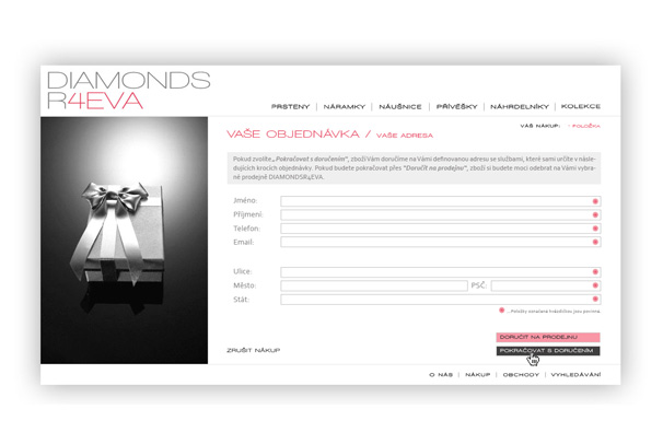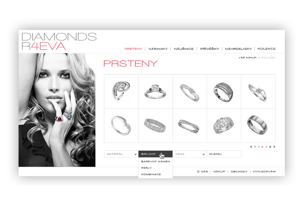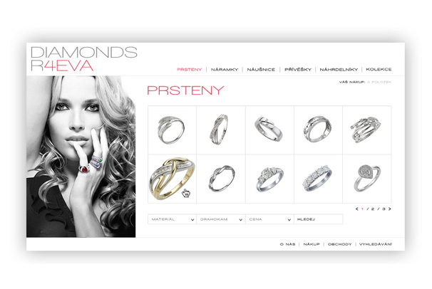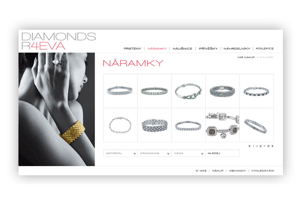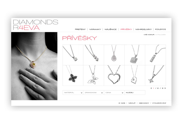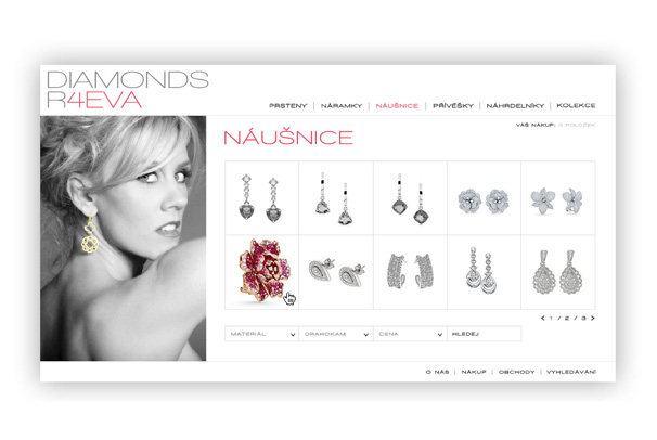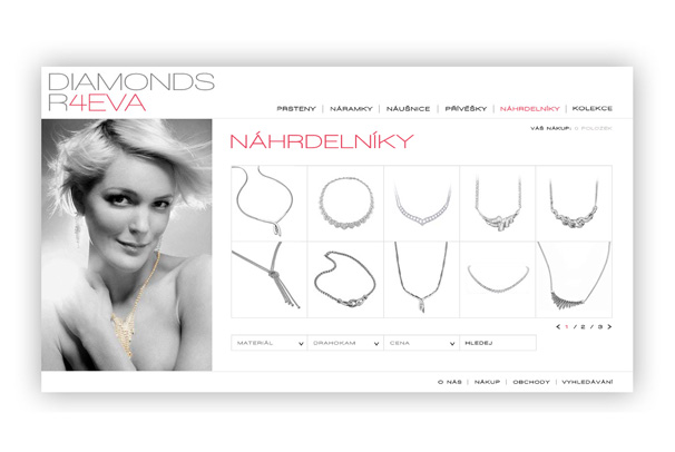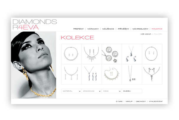 E-shop luxusních diamantových šperků imaginární společnosti Diamondsr4eva.
