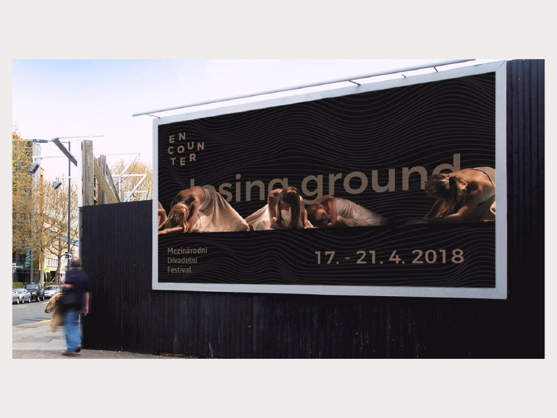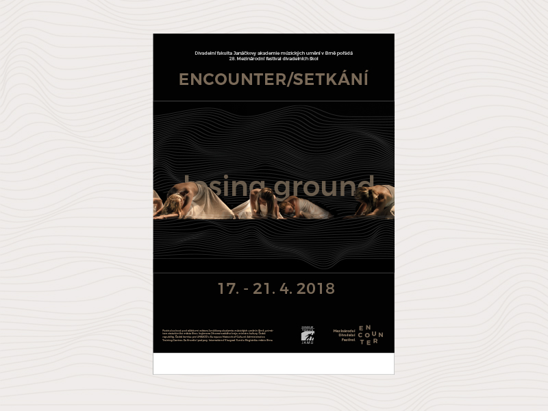 Vizuální styl pro mezinárodní festival divadelních škol ENCOUNTER/SETKÁNÍ. Téma festivalu: Losing ground. SETKÁNÍ/ENCOUNTER je mezinárodní festival divadelních škol s více než pětadvacetiletou tradicí. Jedinečnost festivalu spočívá v tom, že hlavní organizátory tvoří studenti Divadelní fakulty Janáčkovy akademie múzických umění v Brně.