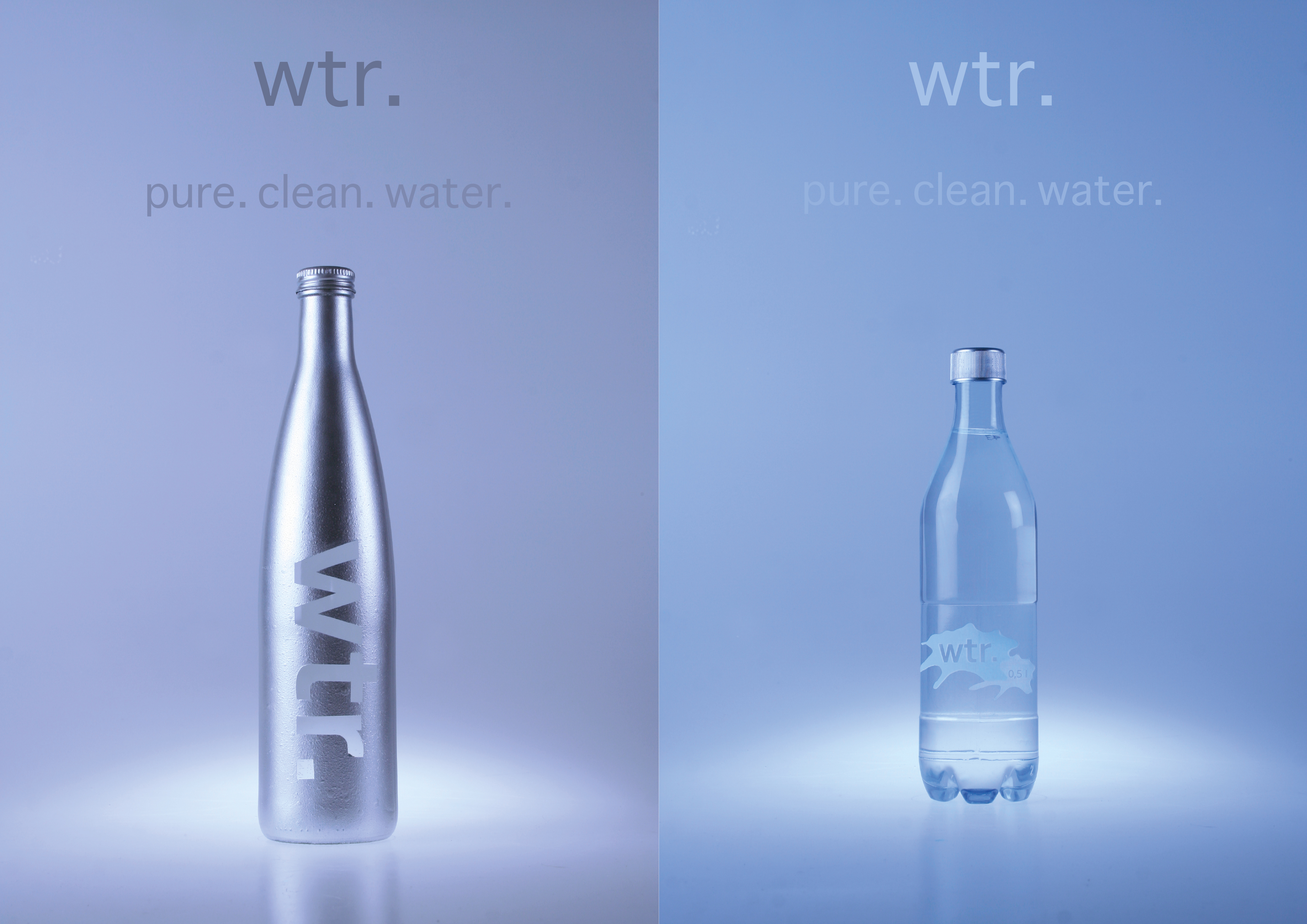 Vizuální komunikace Kolekce lahví na vodu - skleněná a plastová