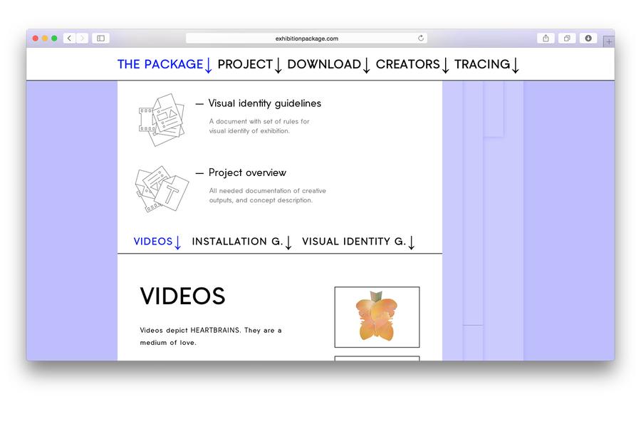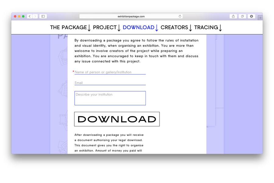 An exhibition is prepared and all its components can be found in a virtual package. The content of the package are creative outputs, all curatorial texts, instructions for installation and guidelines for applying visual identity. The package can be found and downloaded only from exhibitionpackage.com website.