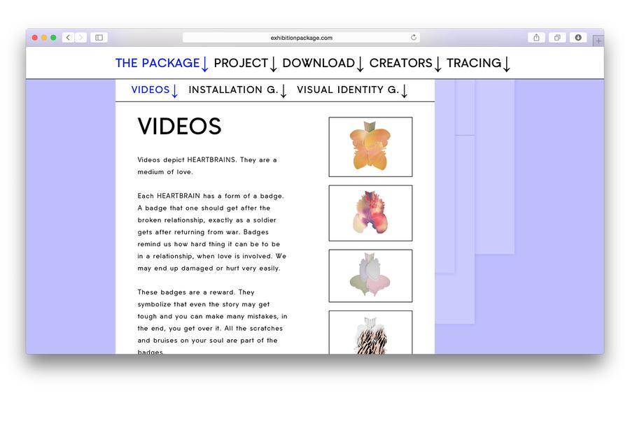 Exhibition package doesn't consider internet to be its final destination. It benefits from its communication features but its main aim is to be presented in a physical world. All parts of the project are equal. This website is nothing less than creative outputs meant for presentation in the gallery.