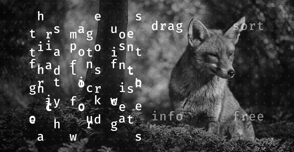 Tato jednoduchá microsite zobrazuje font "Fira Mono", který je volně dostupný z Google Fonts. Jeho hlavní vlastností je stejná šířka všech znaků. Toho využívám při práci v mřížce, která je svazující, ale zároveň vybízí ke zkoumání nových možností prezentace. Celá microsite je koncipována tak, aby nebylo potřeba klikat. Aktivní prvky reagují na hover, jediná akce navíc je vyžadována pouze před stažením fontu (stisknutí klávesy ENTER pro potvrzení). Fonty z rodiny Fira byly původně navrženy pro prohlížeč Mozilla Firefox, proto na pozadí stránky pracuji s obrázkem lišky. S liškou si také spojuji řešení posuvného hlavolamu na úvodní stránce.