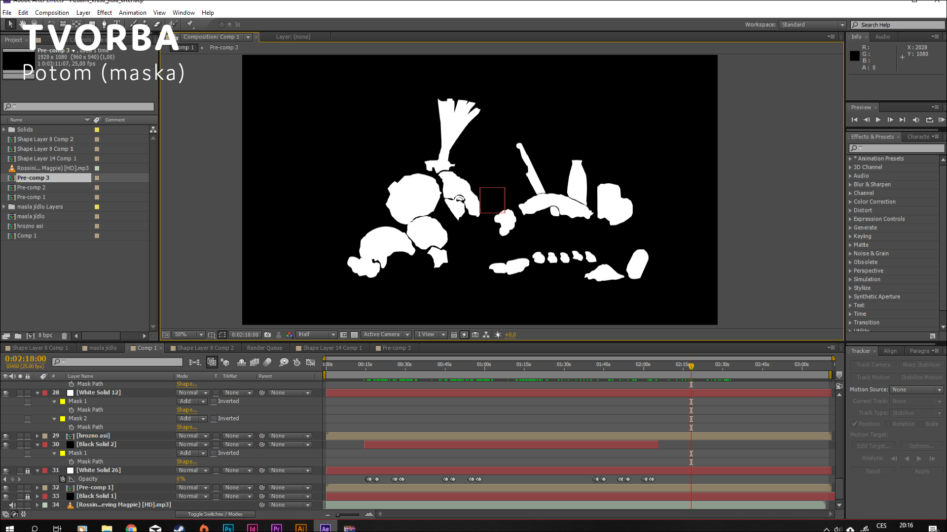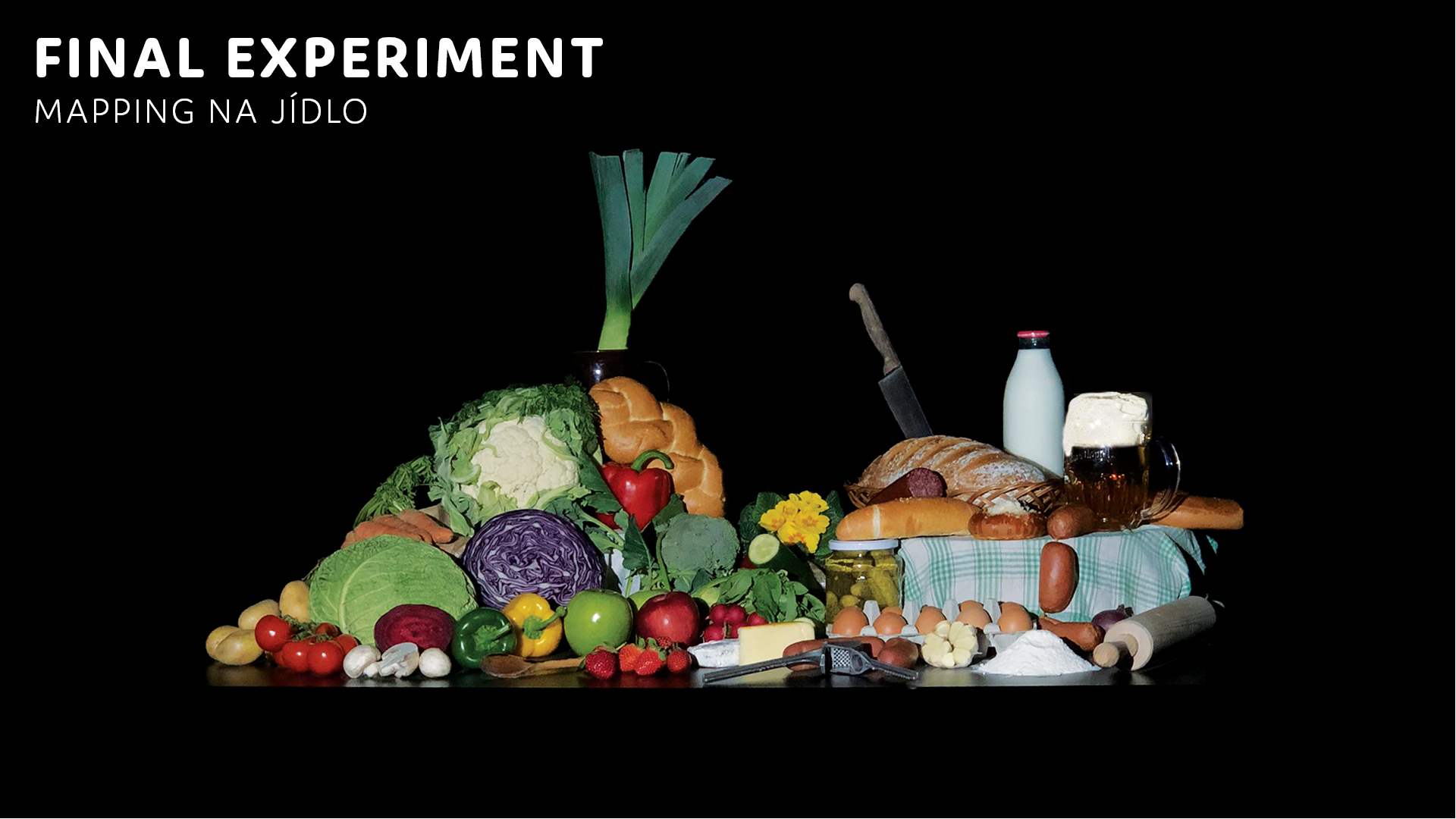 Jídlo jako inspirace - vizuální experiment. Pro tento úkol jsem se rozhodl vytvořit mapping na jídlo. Jelikož se jídlo rychle kazí a tvorba mappingu je zdlouhavá, tak mým úkolem bylo vytvořit mapping, který se dá rychle přetvořit pomocí masky na jakoukoli kompozici. Chtěl jsem si vyzkoušet zda je to vůbec možné mapovat na jídlo.