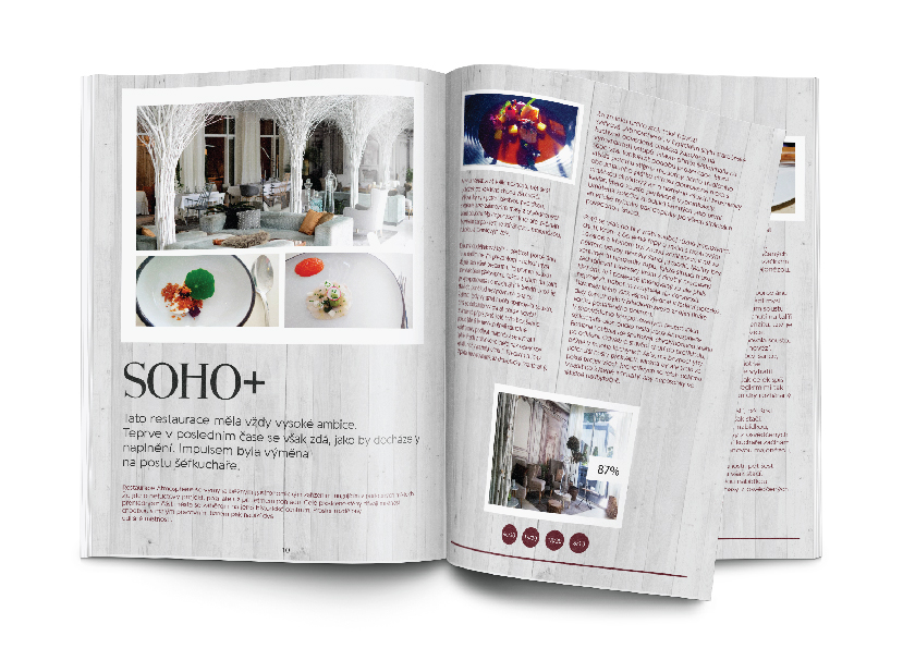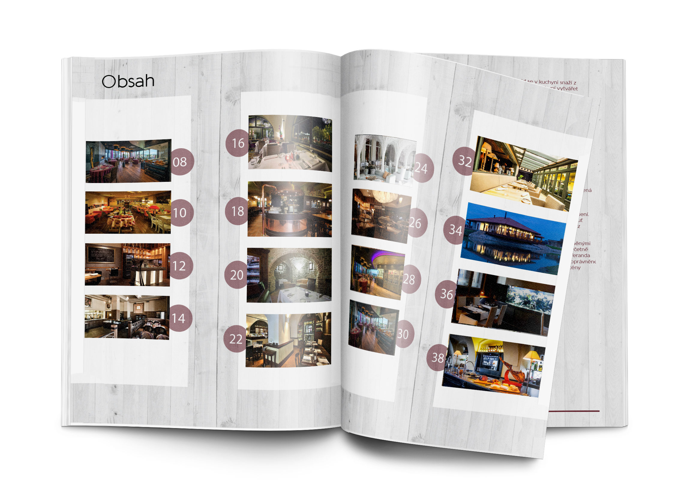 Layout tištěného průvodce po kvalitní české gastronomii.