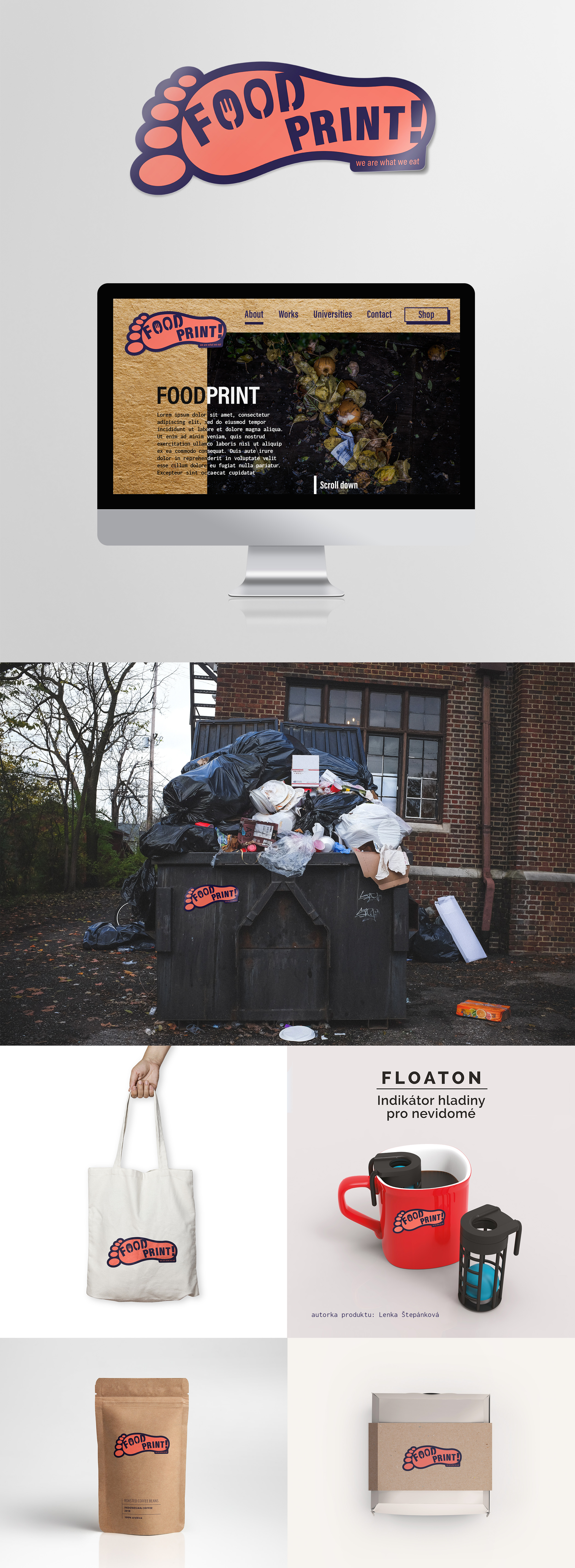 Mezinárodní studentský projekt čtyř univerzit, který reaguje na lidský vztah k jídlu – jak již z názvu vyplývá – propojuje právě angličtina, a to ve snaze zasáhnout co nejglobálnější publikum. Koncept vizuální identity v sobě odráží spojení významu jídla a díky spodobě znělosti v anglické výslovnosti též významu stopy, kterou člověk otiskuje do jím obývaného prostoru. Svým interaktivním zpracováním v podobě samolepky si klade za cíl upoutat pozornost nezúčastněného publika a upozornit ho tím na danou problematiku. Jedná se tedy spíše o formu připomínající svým charakterem hnutí. Samolepku je možné umístit nejen na produkty vzniklé v rámci projektu, ale také například na popelnice vykazující na první pohled plýtvání jídlem, či na jiná veřejná místa. Možným přidáním podlinky s webovou adresou tak vznikne nejen prvek upozorňující na dané téma, ale i samostatně fungující předmět reklamy, který diváka upozorní a zároveň nasměruje na web s kompletními informacemi. Logo v podobě samolepky je stejně tak funkční i v případě umístění na reklamní předměty nebo na webovou stránku.