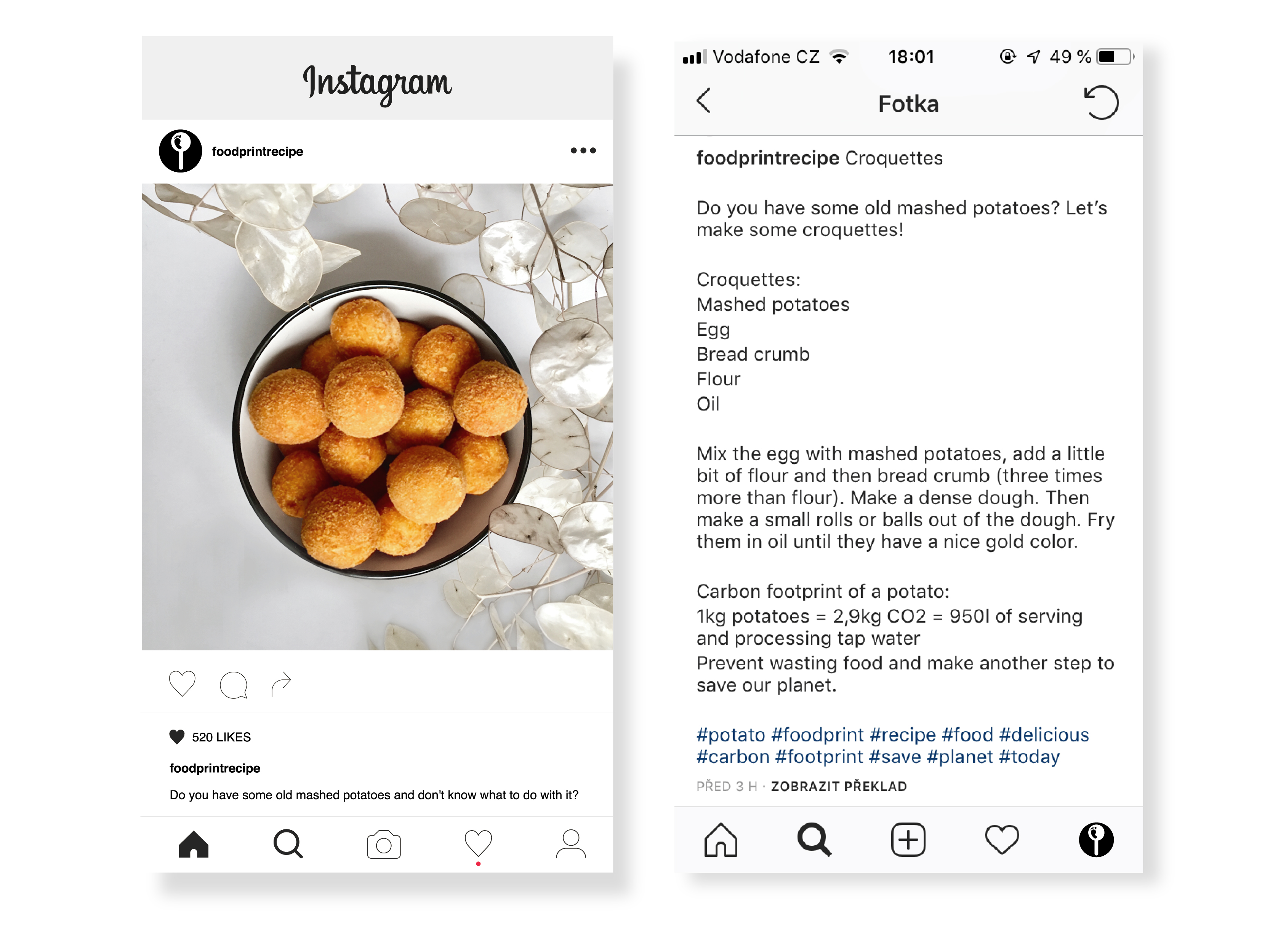 Hlavní myšlenkou je přidávání fotek jídla s recepty, které jsou ze starších surovin. U každého příspěvku je také krátká informace o CO2.