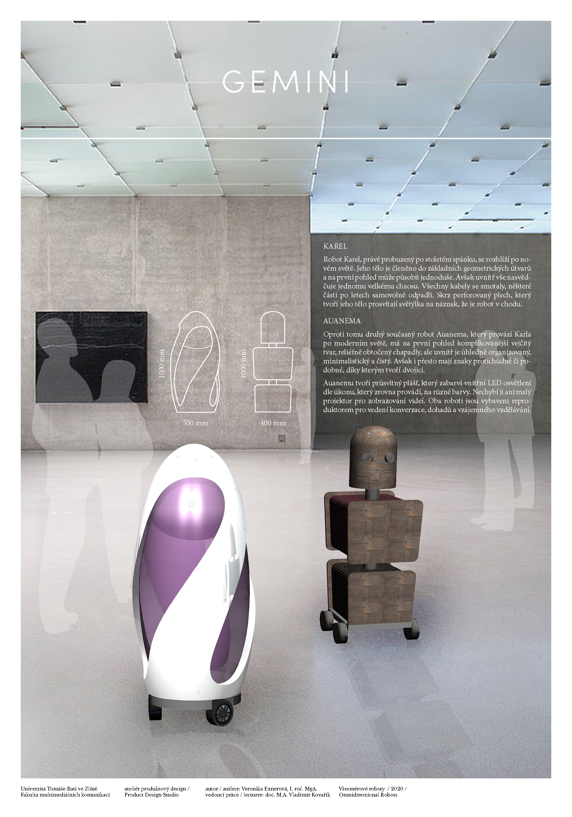 Oproti tomu druhý současný robot Auanema, který provází Karla po moderním světě, má na první pohled komplikovanější vejčitý tvar, reliéfně obtočený chapadly, ale uvnitř je úhledně organizovaný, minimalistický a čistý. Avšak i přesto mají znaky protichůdné či podobné, díky kterým tvoří dvojici.