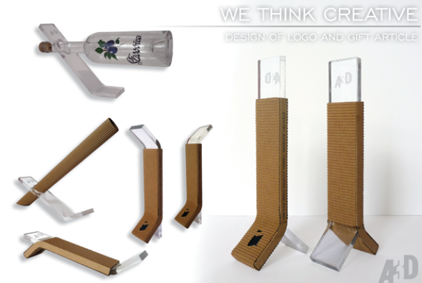 Dárkový predmet pro návštevníky Ústavu vizuální tvorby má priblížit cinnosti, které se v ateliéru 3D realizují. Mou hlavní ideou bylo vytvorit zmenšenou maketu POP displaye, kterým se v tomto oboru casto zabýváme. Pod papírovým obalem se však skrývá funkcní držák pro láhve, který je primárním úcelem dárkového predmetu. Jeho sekundárním úcelem však muže být i další využití, které závisí pouze na kreativním prístupu každého majitele.