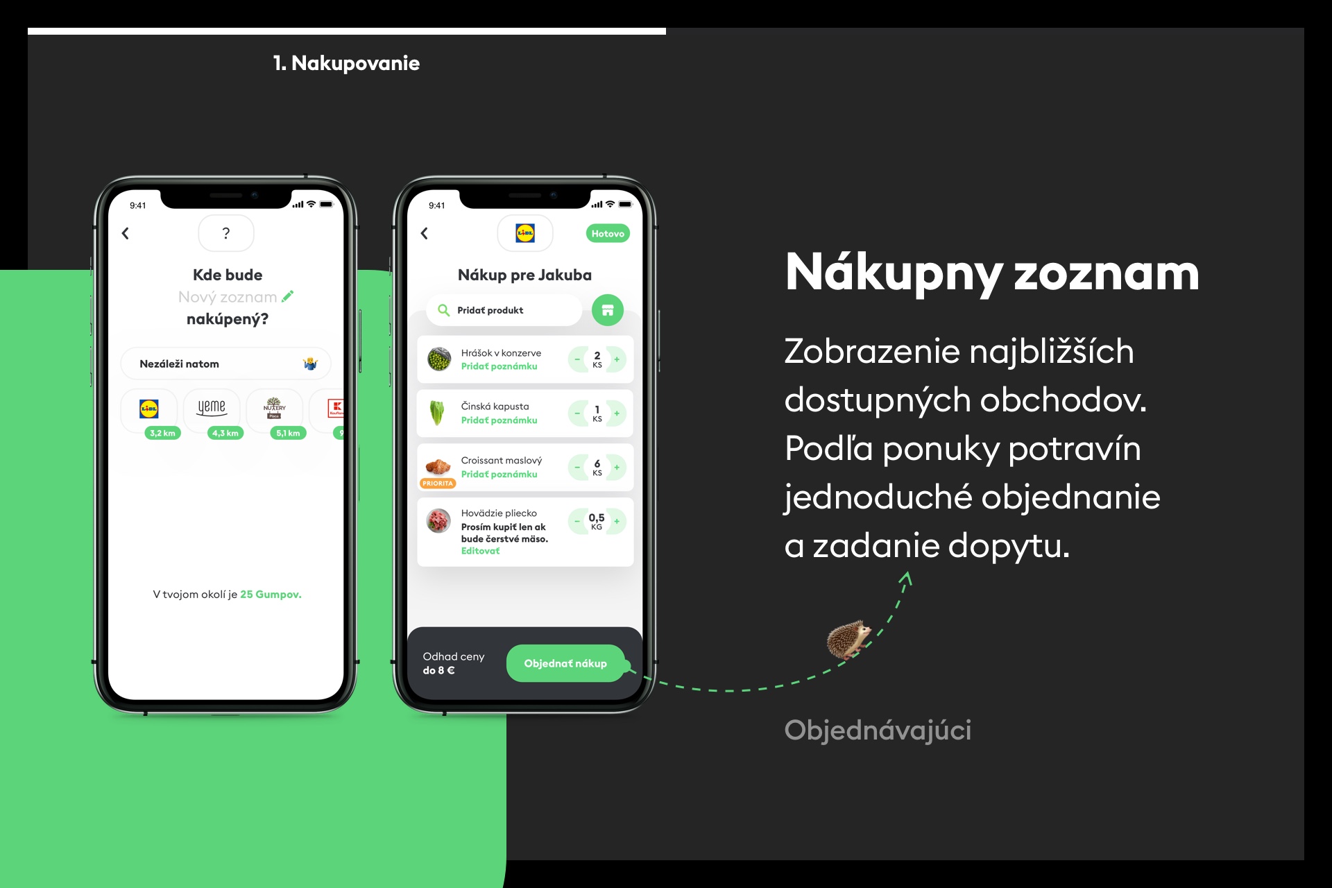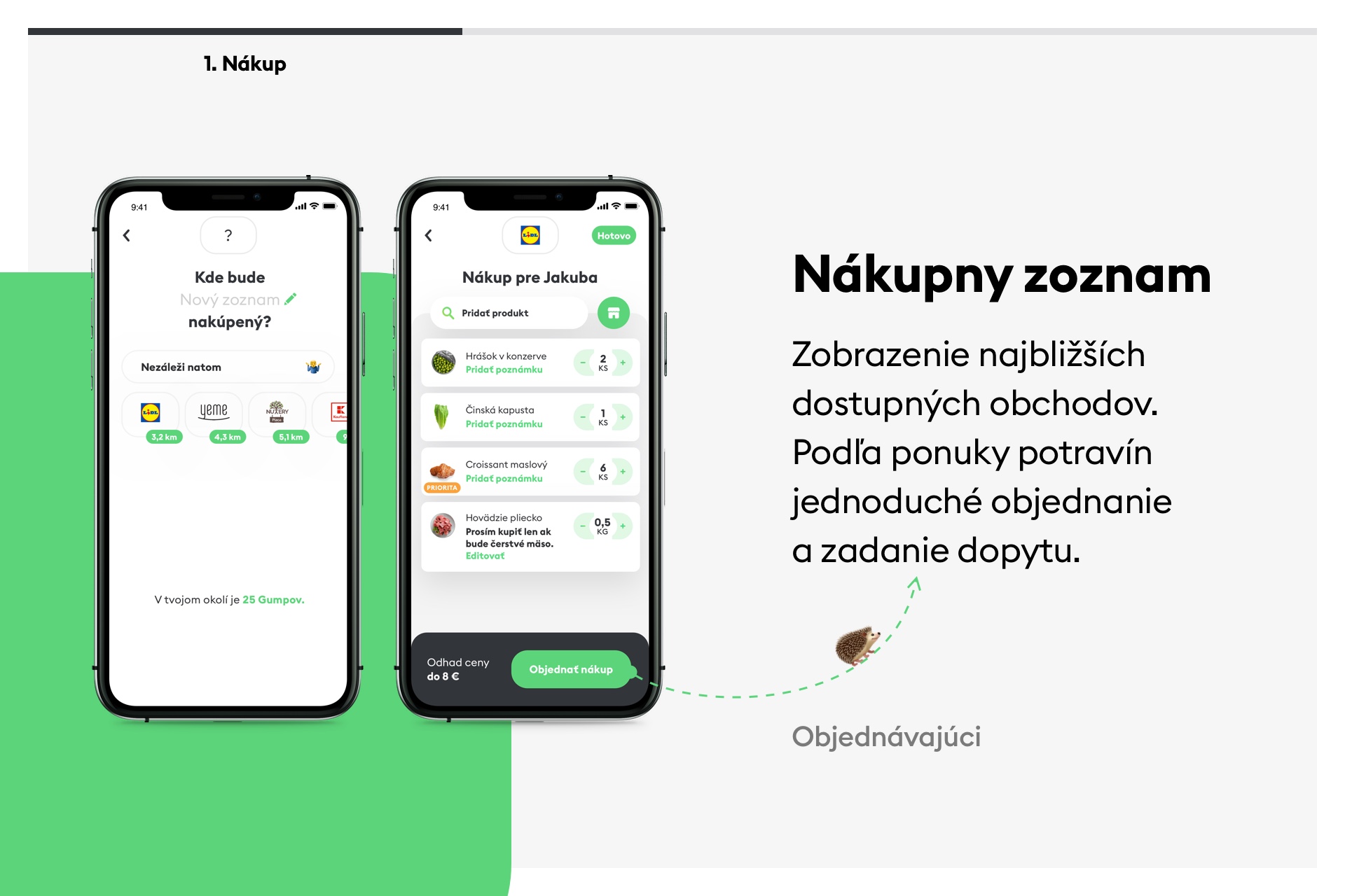 Vyriešený problém je jasný, nákup a dovoz potravín. Potraviny teraz môže nakupovať a roznášať uplne každý a to po rovno všade po svete. Aplikácia Gump však v prvom rade upevňuje vzájomnú pomoc, nakoľko je to prínosne pre obe zúčastnené strany. Potrebná je len aplikácia a obchod v okolí. V obchodoch môžete nájsť aktuálnu ponuku produktov, ale takisto aj akciové produkty. Nachádzať sa tam môžu lacné potraviny pred zárukou, alebo potraviny zadarmo pred vyhodením. Takéto produkty môžu byť roznesené Gump-om sociálne slabším. Riešenie je ideálne ako cez, tak aj po korona kríze. Jeho jednoduché spracovanie dovoľuje uživateľom duplikovať svoj nákupný zoznam a stráviť tak nákupom potravín s platbou menej ako 1 minútu. Nemusí pritom príjsť k žiadnému osobnému kontaktu a nákup bude doručený priamo k dverám. Aplikácia využíva funkcie obľúbených potravín, často nakupovaných potravín alebo predvyrobených nákupných zoznamov.