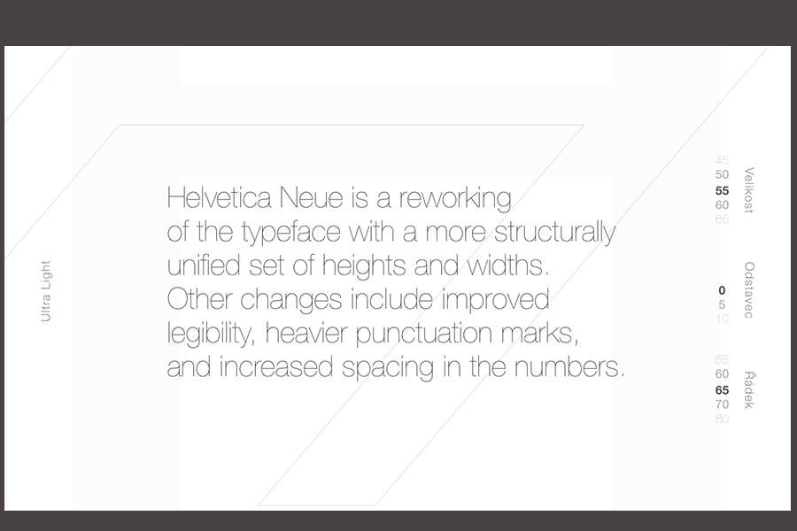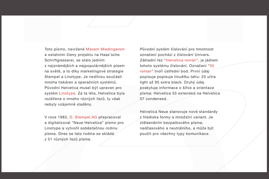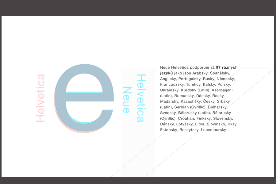 Projekt, který rezentuje písmo Helvetica Neue v jeho rozmanitých formách, použitelných pro tisk i digitální grafiku.